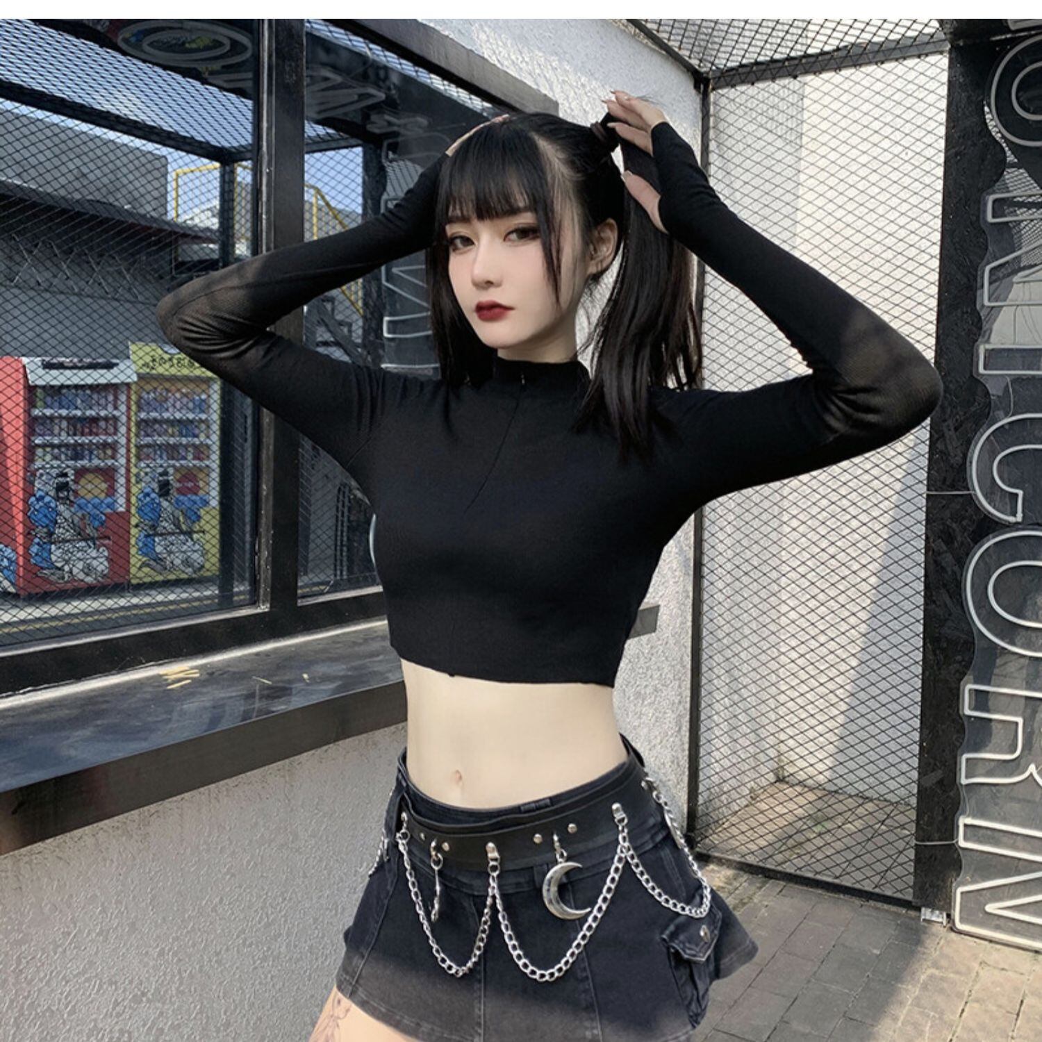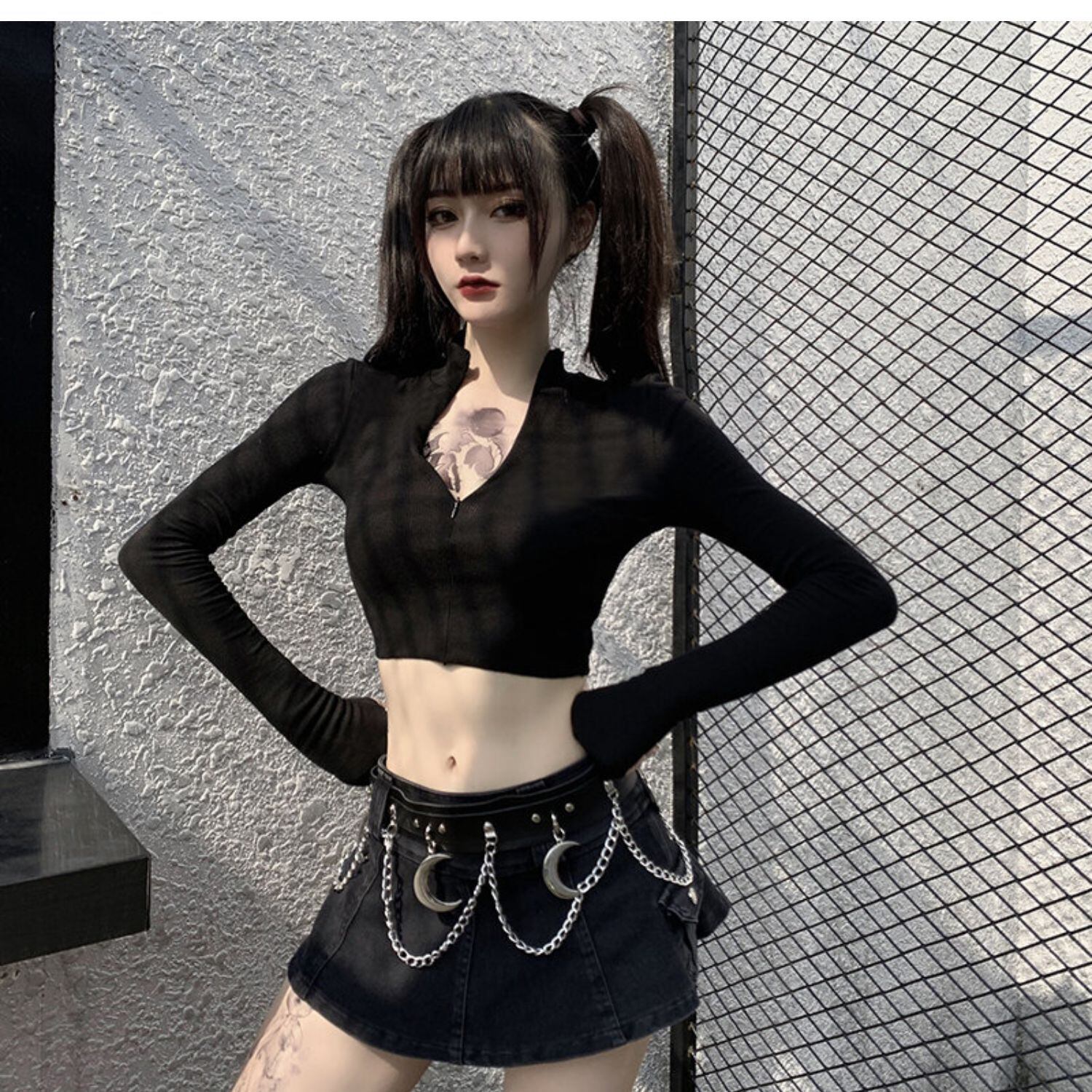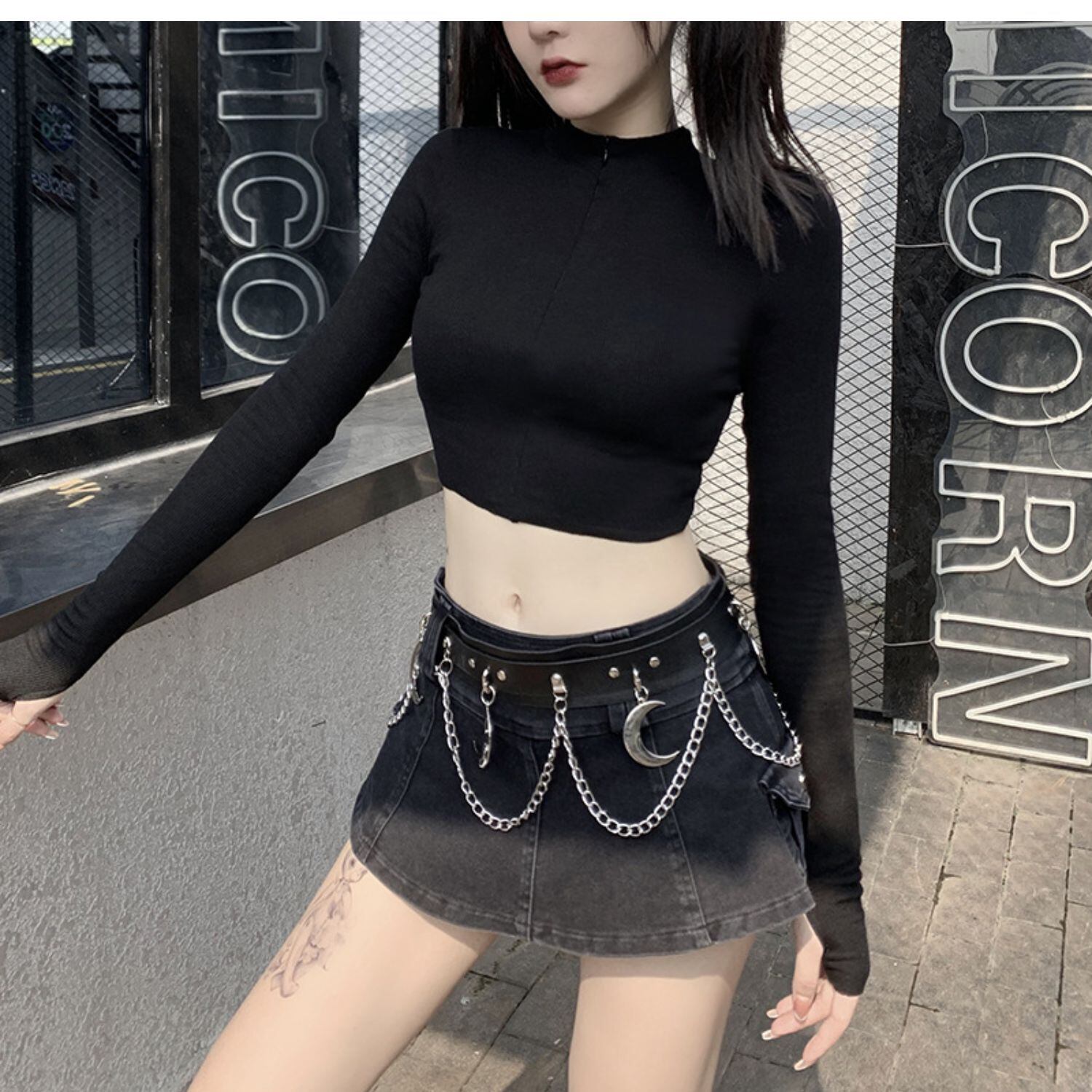 ✞✝✞ オータムスリムトップス 大人女子☆ショート♡タイトジッパーTシャツ ロング 秋物 ✞✝✞ ゴスロリ SM ミリ 甘ロリ クラロリ 和ロリ エレガント 黒ロリ 姫ロリ 華ロリ AA-AA23952792191