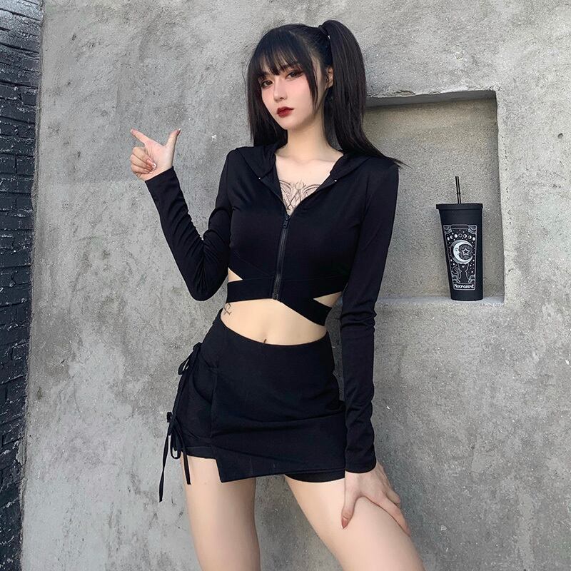 ✞✝✞ ジャケット フードショートスリムオータムクロスカーディガン♥カワイイ♥♡ ストリート 秋物 ✞✝✞ ゴスロリ SM ミリ 甘ロリ クラロリ 和ロリ エレガント 黒ロリ 姫ロリ 華ロリ AA-AA80590986891