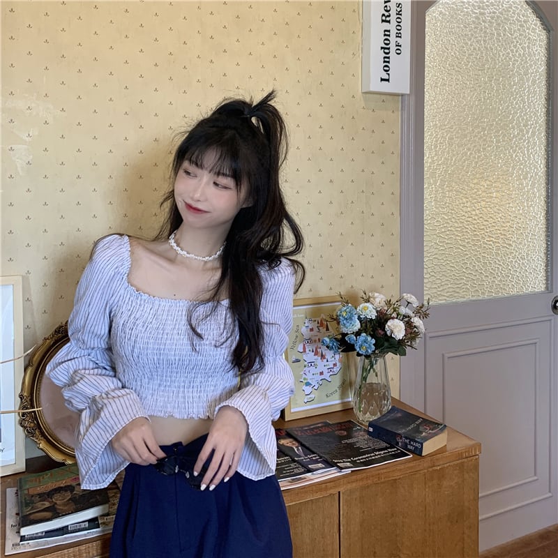 ✞ スリムバックショートストライプTシャツ トップス 大人女子☆ ランタンスリーブ スクウェア ✞ゴスロリ SM ミリ 甘ロリ クラロリ 和ロリ エレガント 黒ロリ 姫ロリ 華ロリ BB-BB62147322214