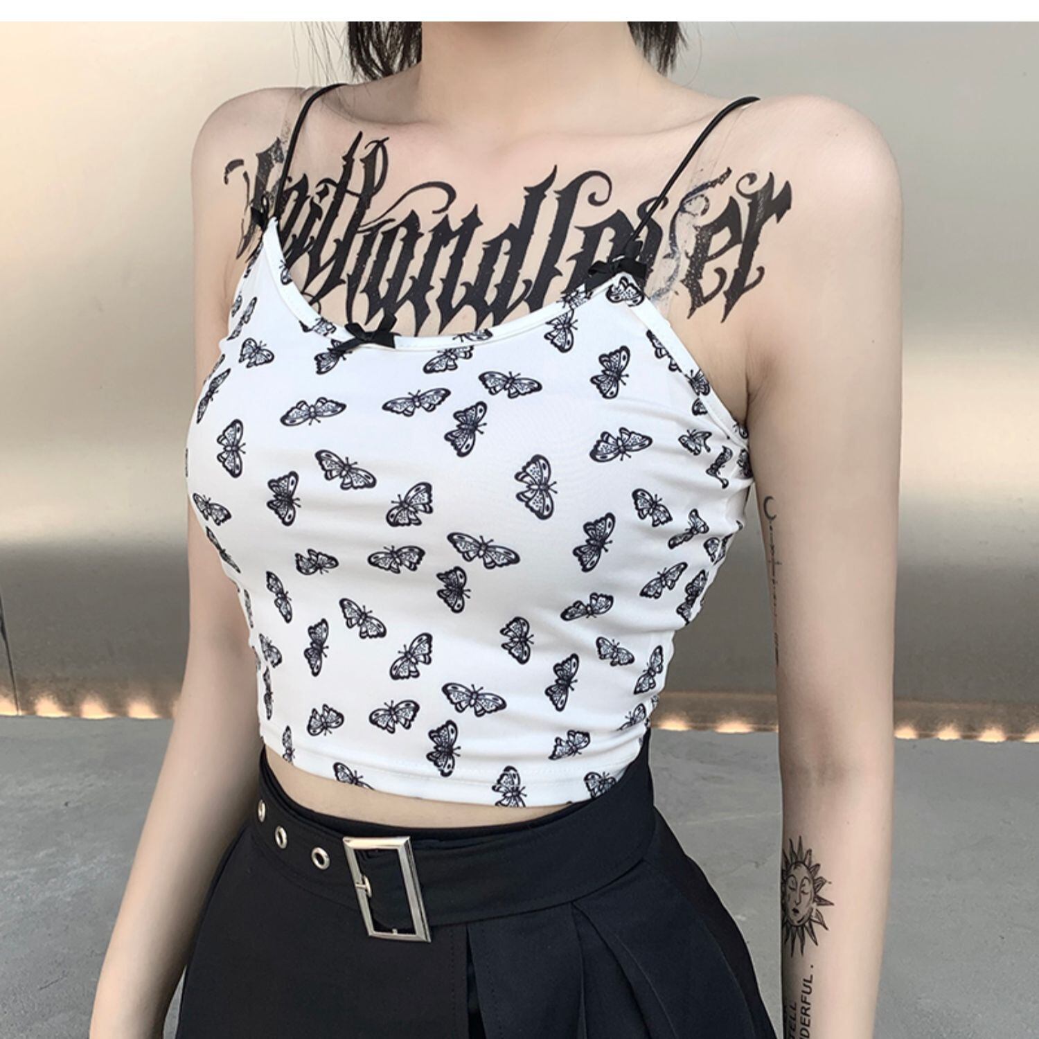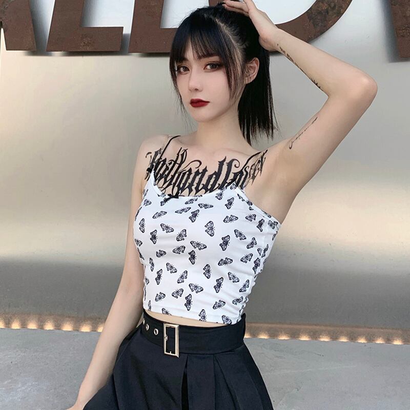 ✞✝✞ 白Butterflyデザイン キャミソールハイウェストクロップドショートコート ホワイト ✞✝✞ ゴスロリ SM ミリ 甘ロリ クラロリ 和ロリ エレガント 黒ロリ 姫ロリ 華ロリ AA-AA81975672993