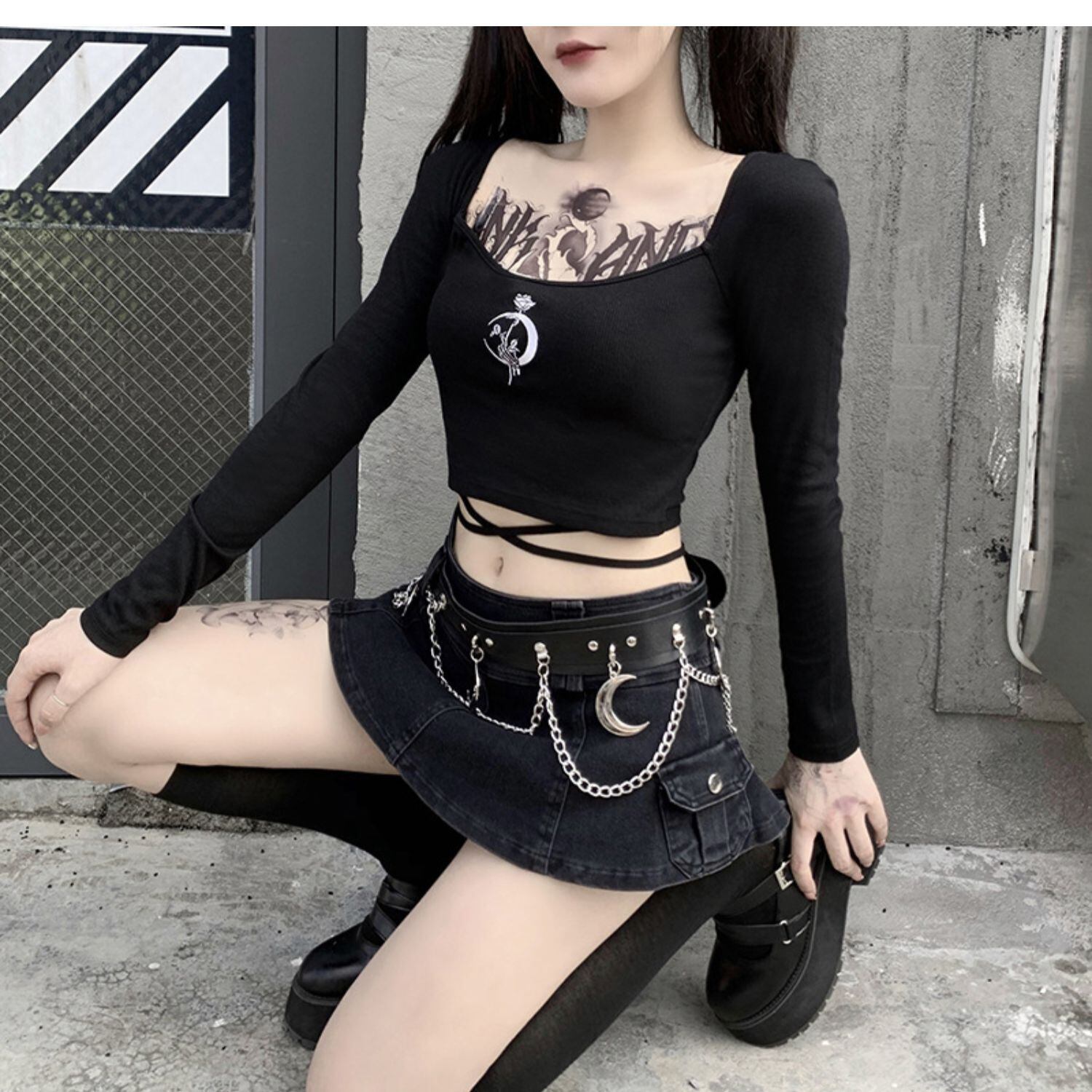✞✝✞ 刺繍ブラウス 大人女子☆♥カワイイ♥ブラックTシャツ ショート ロング スクウェア ✞✝✞ ゴスロリ SM ミリ 甘ロリ クラロリ 和ロリ エレガント 黒ロリ 姫ロリ 華ロリ AA-AA60148316426
