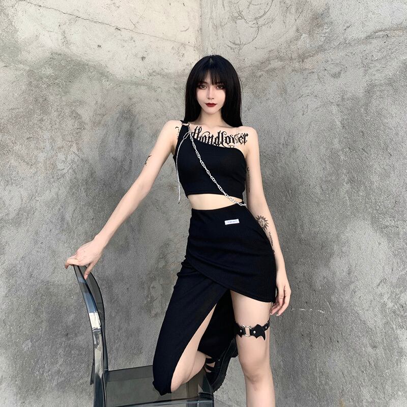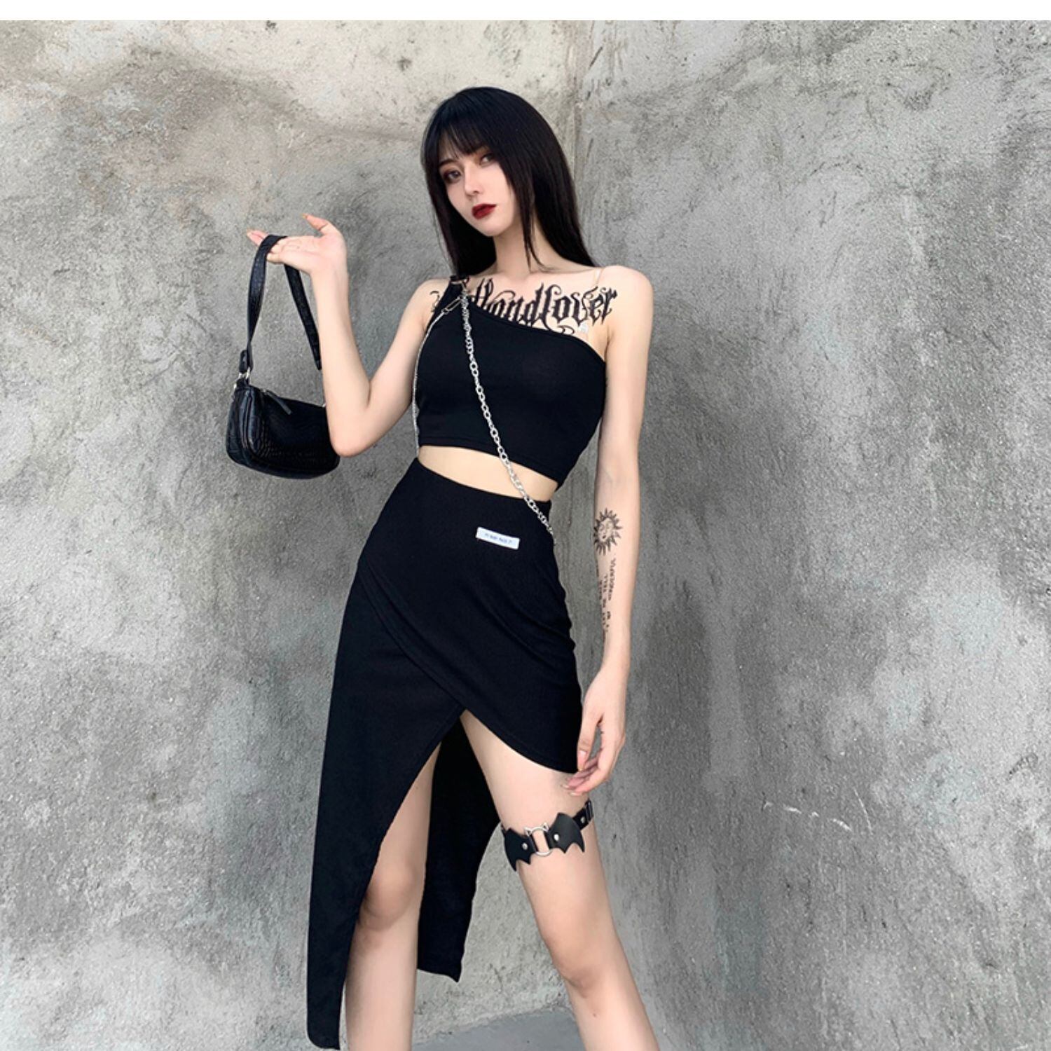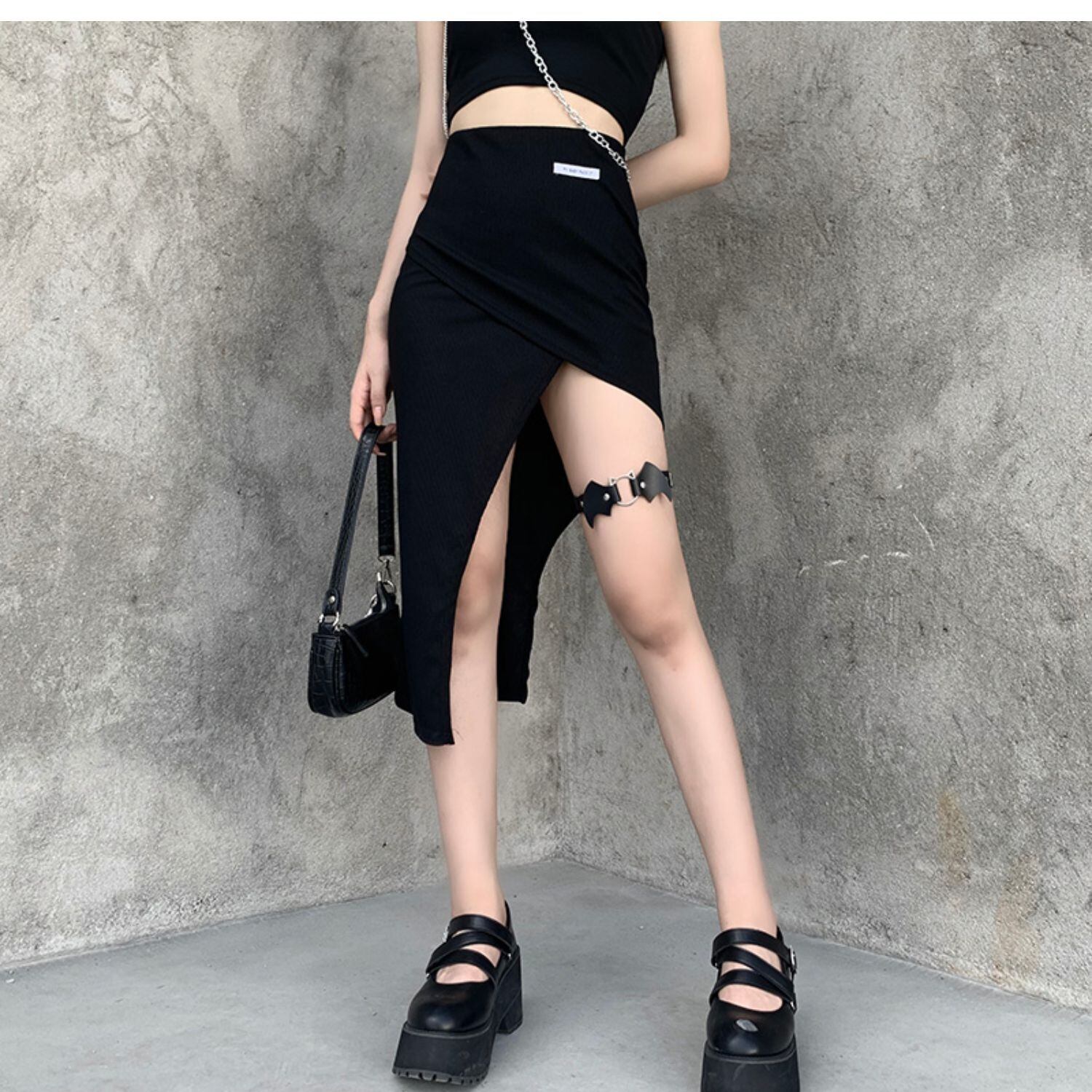 ✞✝✞ アシンメトリースリットブラックスカート 今年流行☆ ✞✝✞ ゴスロリ SM ミリ 甘ロリ クラロリ 和ロリ エレガント 黒ロリ 姫ロリ 華ロリ AA-AA64335815520