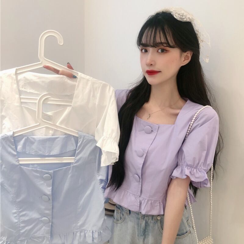 ✞ ショートトップス 大人女子☆スタンダードスリムスリーブシャツブラウス レトロ スクウェア ✞ゴスロリ SM ミリ 甘ロリ クラロリ 和ロリ エレガント 黒ロリ 姫ロリ 華ロリ BB-BB53019256726