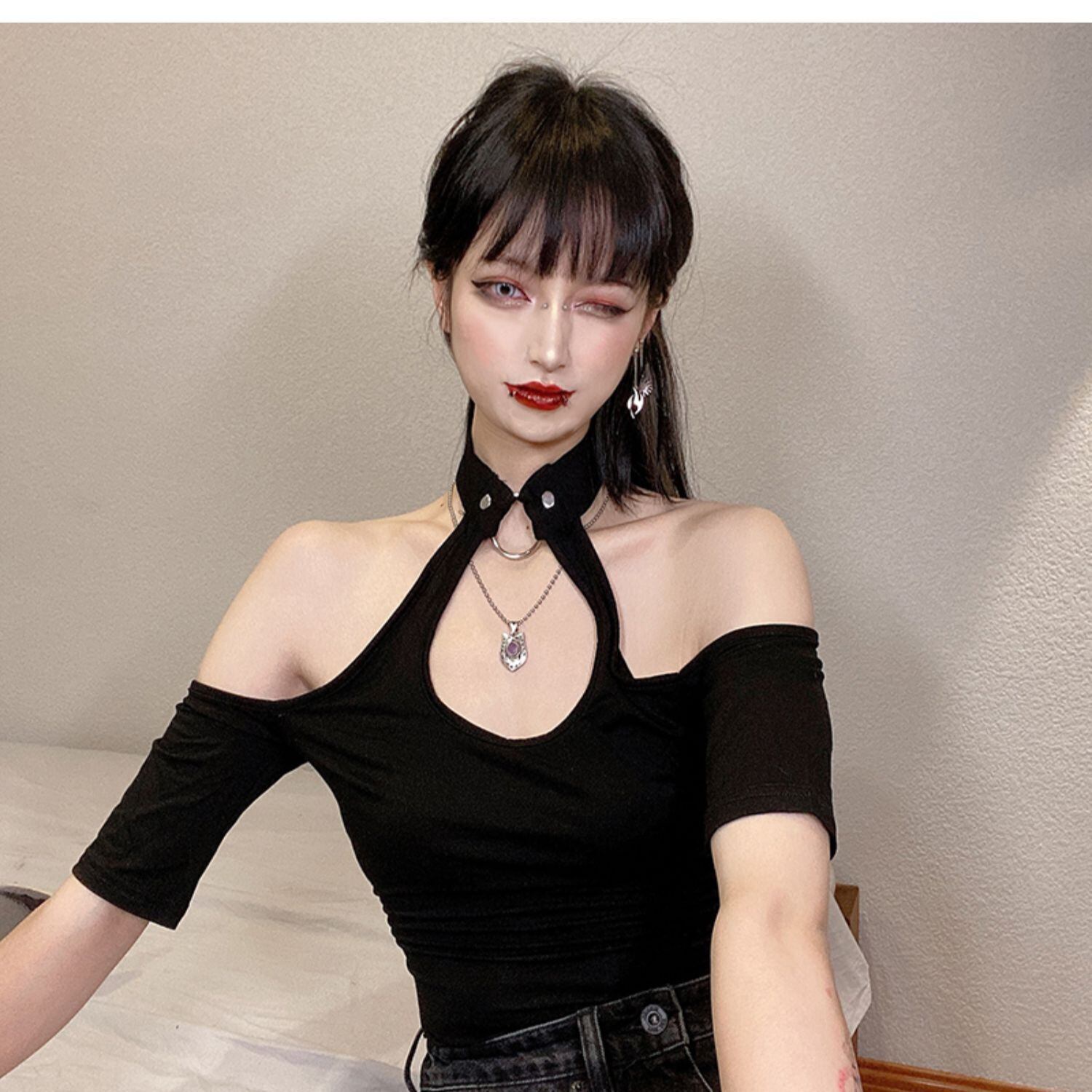 ✞✝✞ ♡ブラックTシャツ ホルタートップス ✞✝✞ ゴスロリ SM ミリ 甘ロリ クラロリ 和ロリ エレガント 黒ロリ 姫ロリ 華ロリ AA-AA13494403997