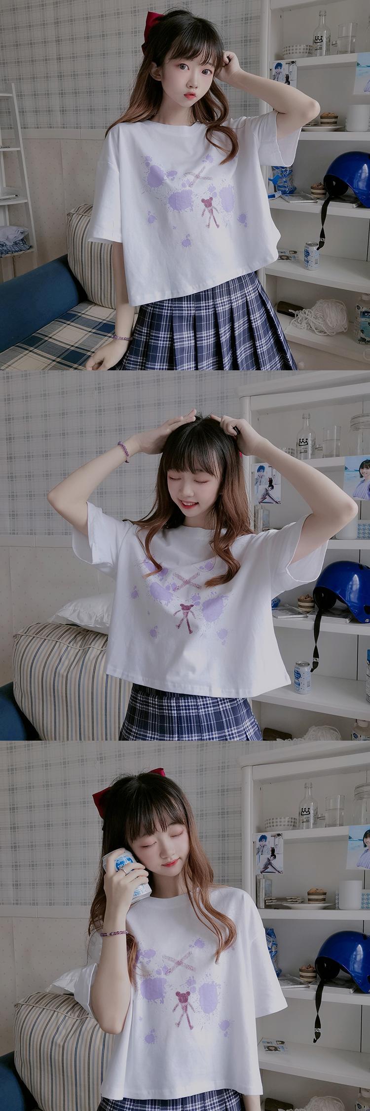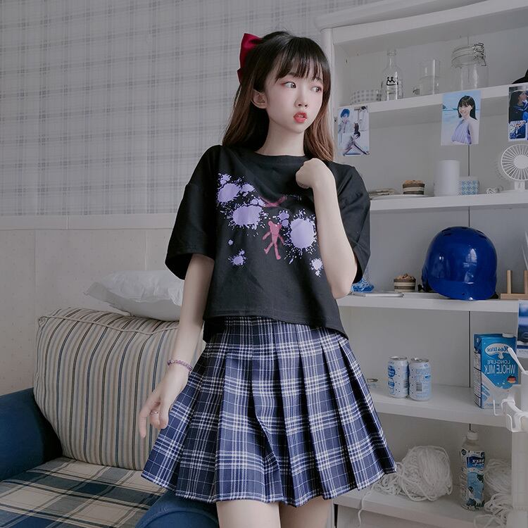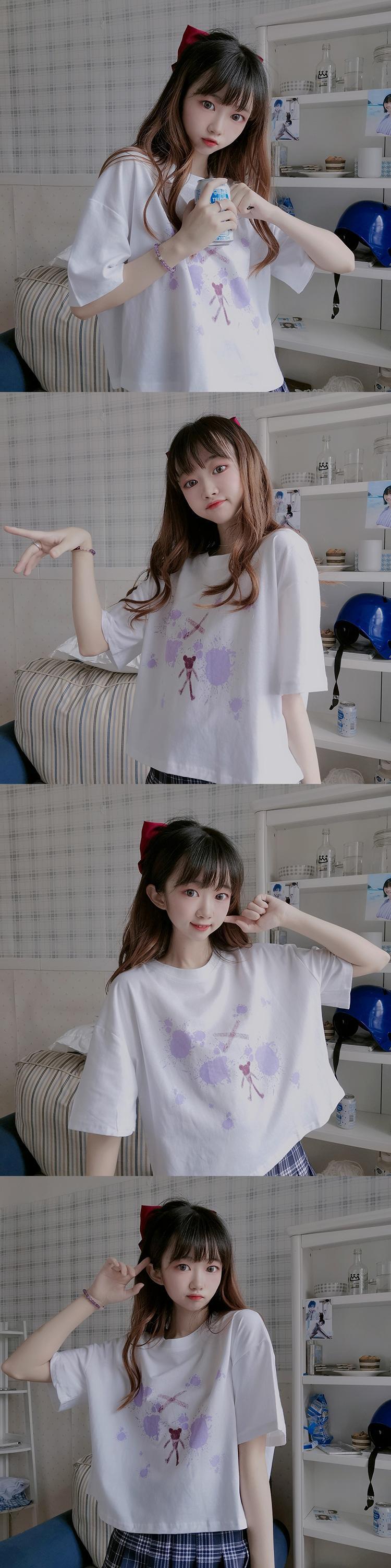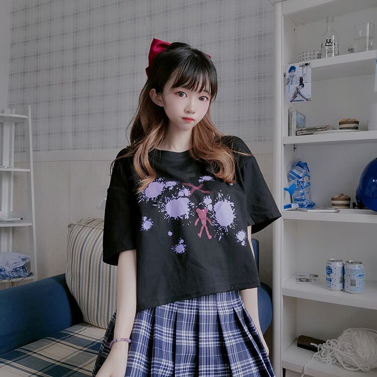 ✞ サマーラウンドネックダークプリント柄ショートTシャツ トップス 夏物 ✞ゴスロリ SM ミリ 甘ロリ クラロリ 和ロリ エレガント 黒ロリ 姫ロリ 華ロリ BB-BB27065579139