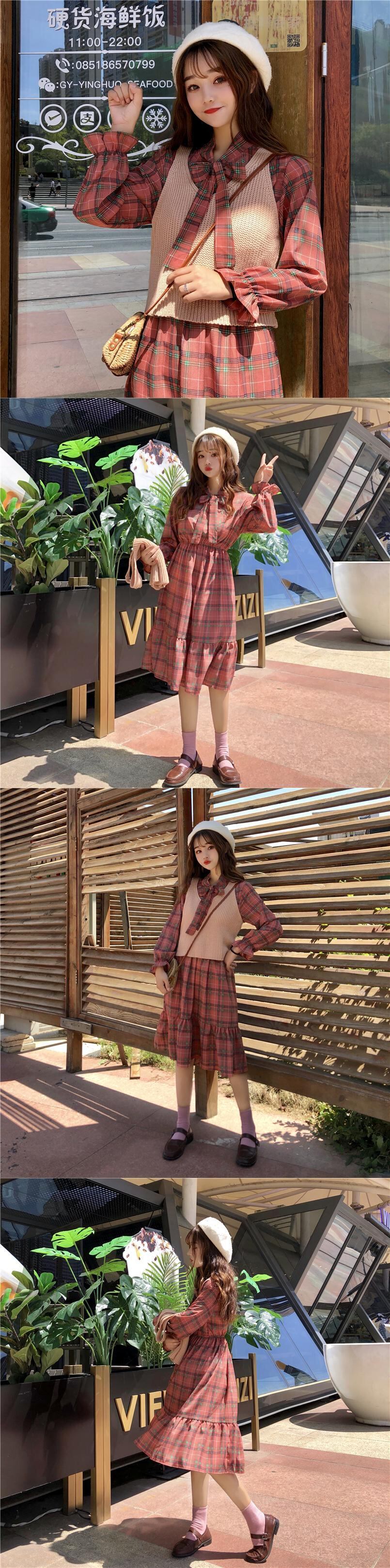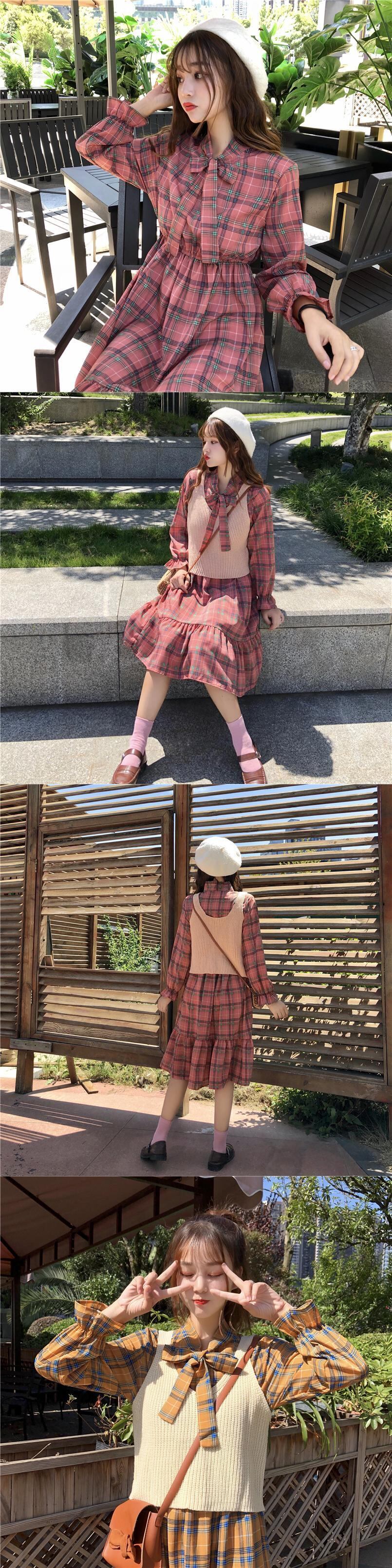 種類 サイズ:ワンサイズ, 色: チェック柄スカートワンピース サイズ:ワンサイズ, 色:イエローチェック柄ワンピース サイズ:ワンサイズ, 色:ピンクベストワンピース サイズ:ワンサイズ, 色:アプリコットベストワンピース