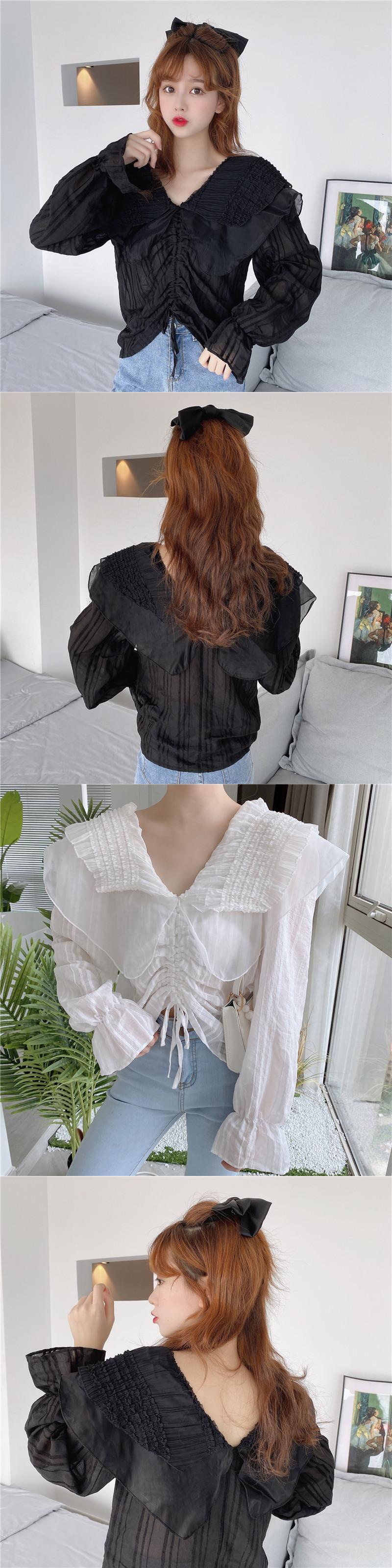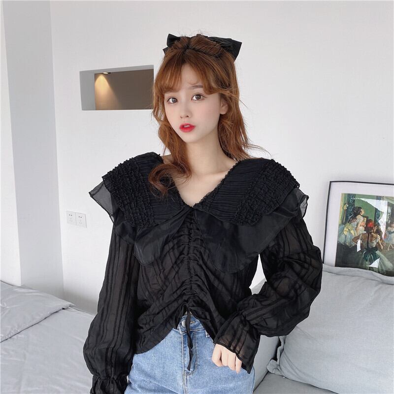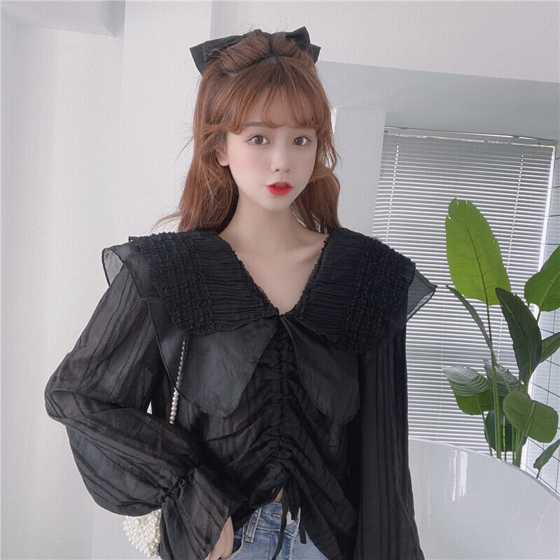 ✞ シフォンスリーブシャツブラウス♡ストラップレス★トップス ロング レース レースアップ ✞ゴスロリ SM ミリ 甘ロリ クラロリ 和ロリ エレガント 黒ロリ 姫ロリ 華ロリ BB-BB50502659194