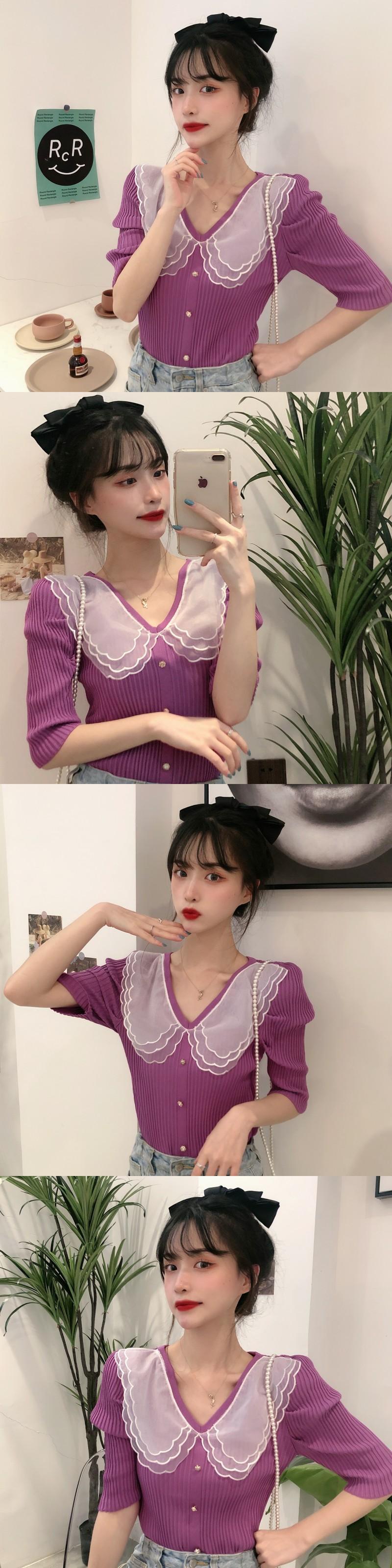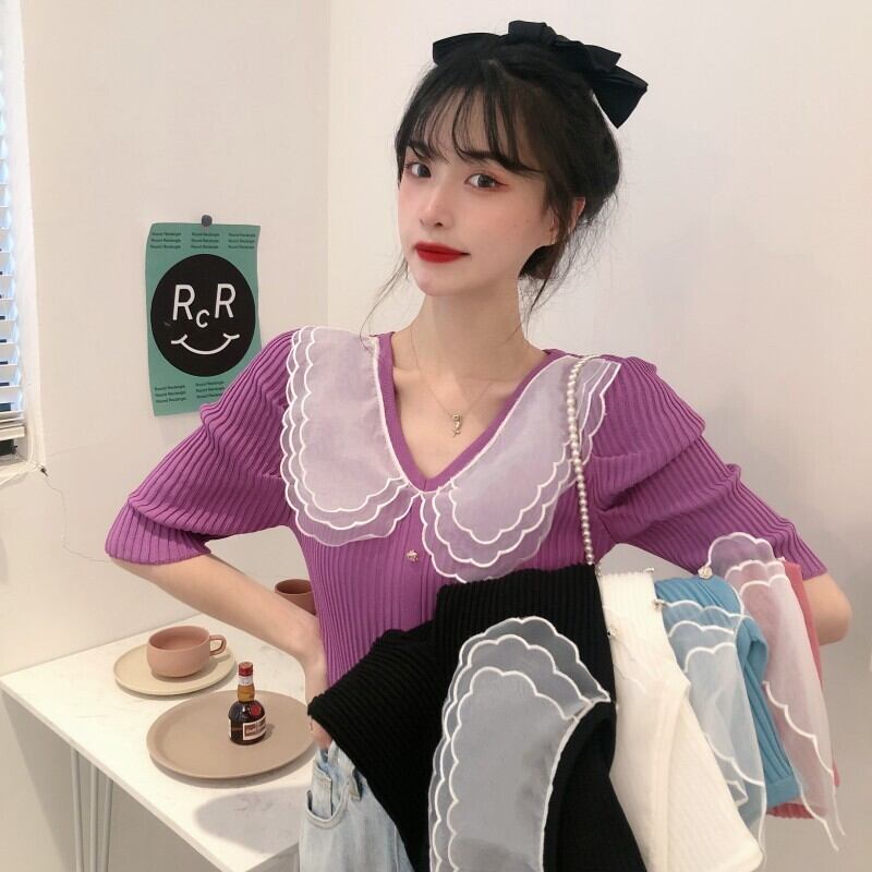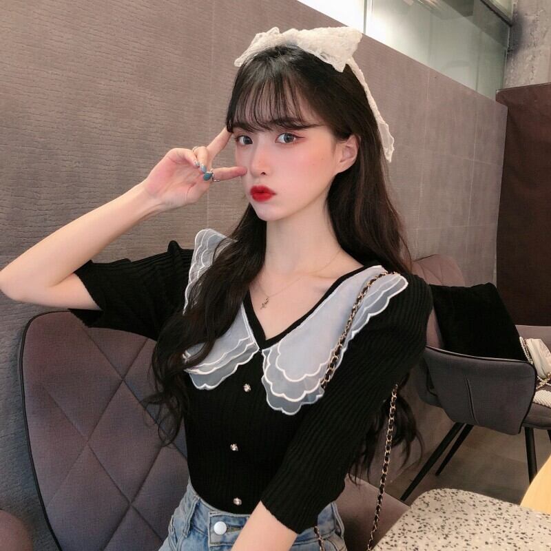 ✞ スタンダードVネックメッシュレースショートスリムセーター 大人女子☆ レトロ ステッチ ✞ゴスロリ SM ミリ 甘ロリ クラロリ 和ロリ エレガント 黒ロリ 姫ロリ 華ロリ BB-BB77948109938