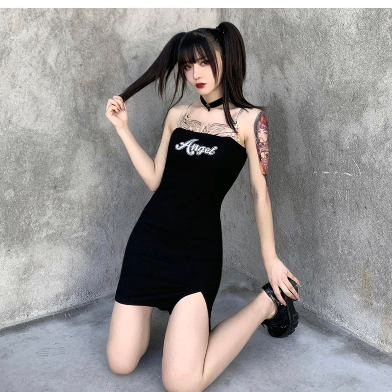 ✞✝✞ ブラックスリット刺繍チューブトップ ストラップノースリーブ ✞✝✞ ゴスロリ SM ミリ 甘ロリ クラロリ 和ロリ エレガント 黒ロリ 姫ロリ 華ロリ AA-AA33306520640