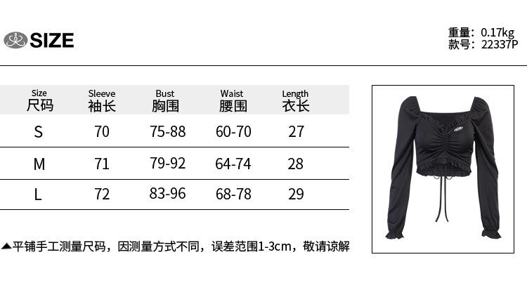 ✞✝✞ Vネックギャザーショート丈シャツ パフスリーブ♡ブラックハイウェストトップス ♥カワイイ♥ ロング ✞✝✞ ゴスロリ SM ミリ 甘ロリ クラロリ 和ロリ エレガント 黒ロリ 姫ロリ 華ロリ AA-AA84798671402