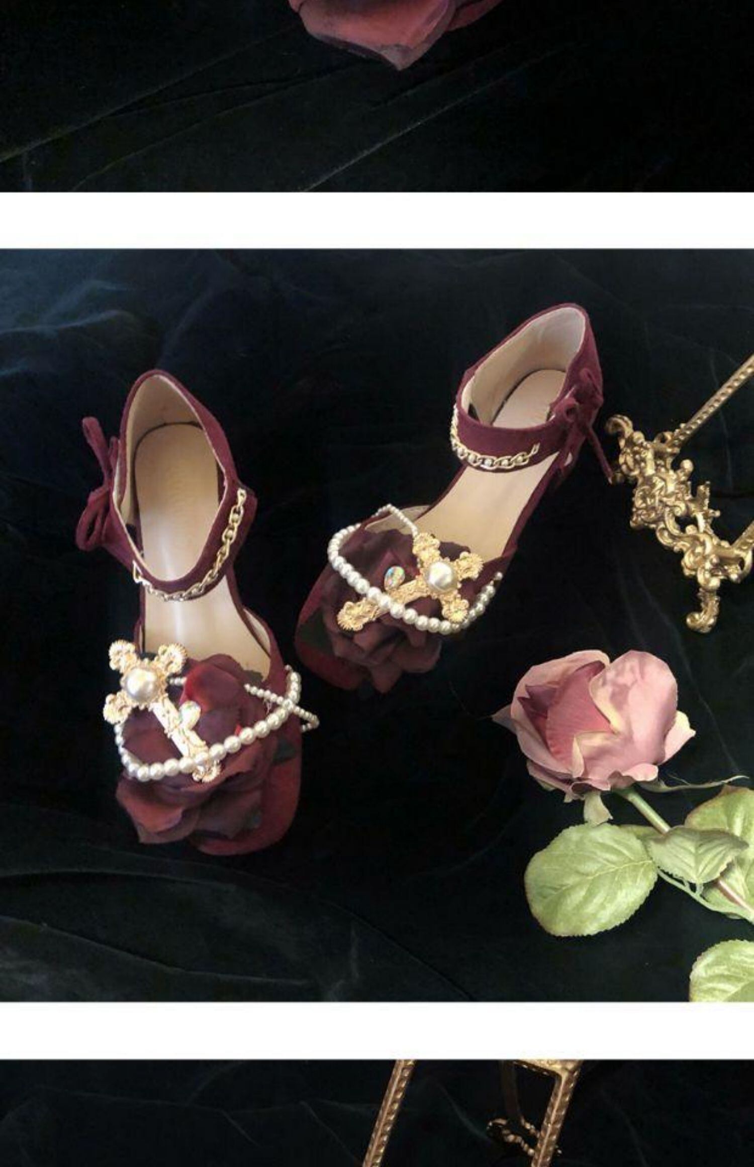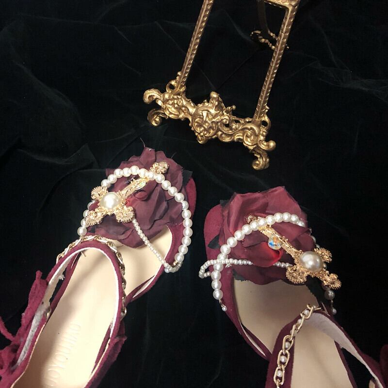 ✞✝✞ ダークヴィンテージ花柄クロス♡ 靴 シューズ ラウンドトー フラワーデザイン ビンテージ ✞✝✞ゴスロリ SM ミリ 甘ロリ クラロリ 和ロリ エレガント 黒ロリ 姫ロリ 華ロリ DD-DD4307747332