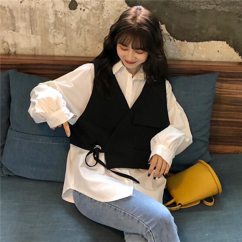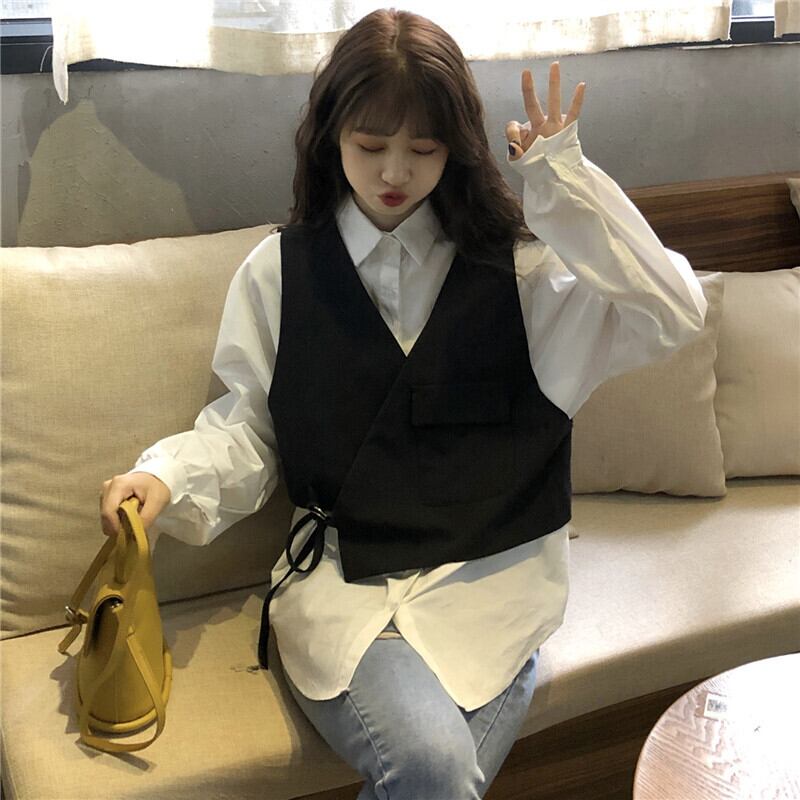 色:グリーンベストワンピース,黒のベスト,シャツワンピース