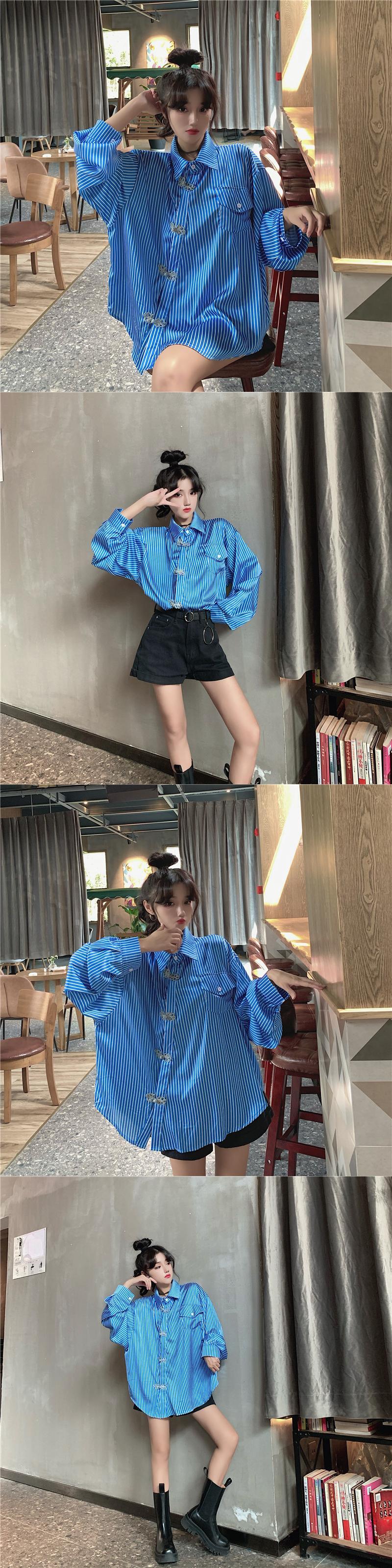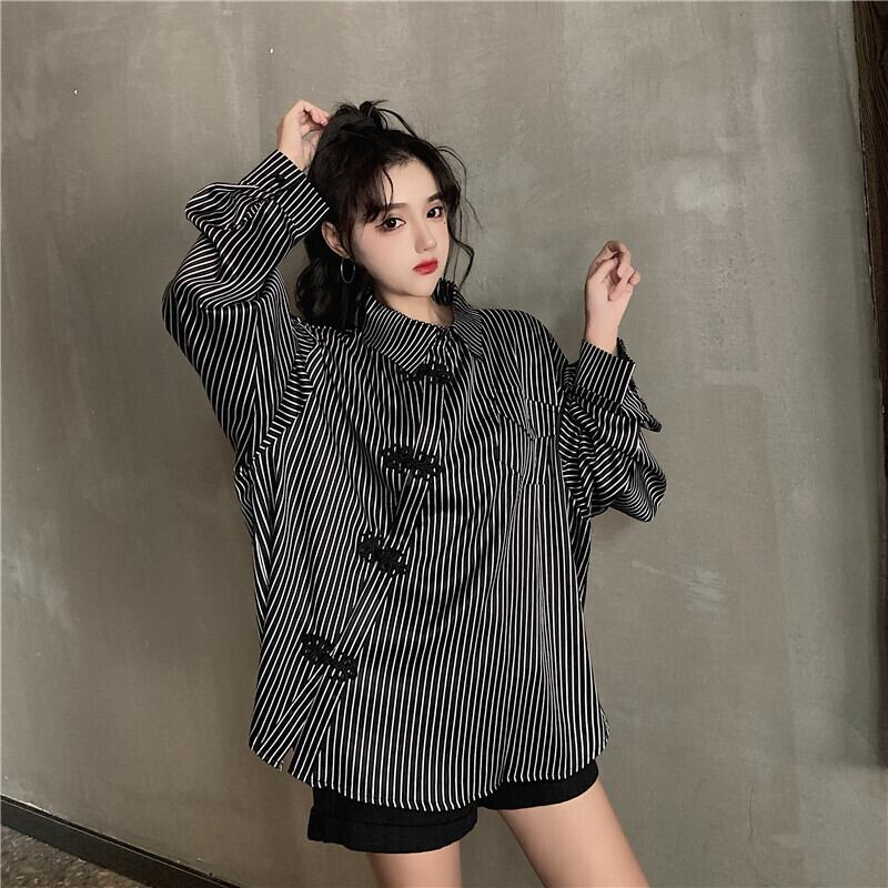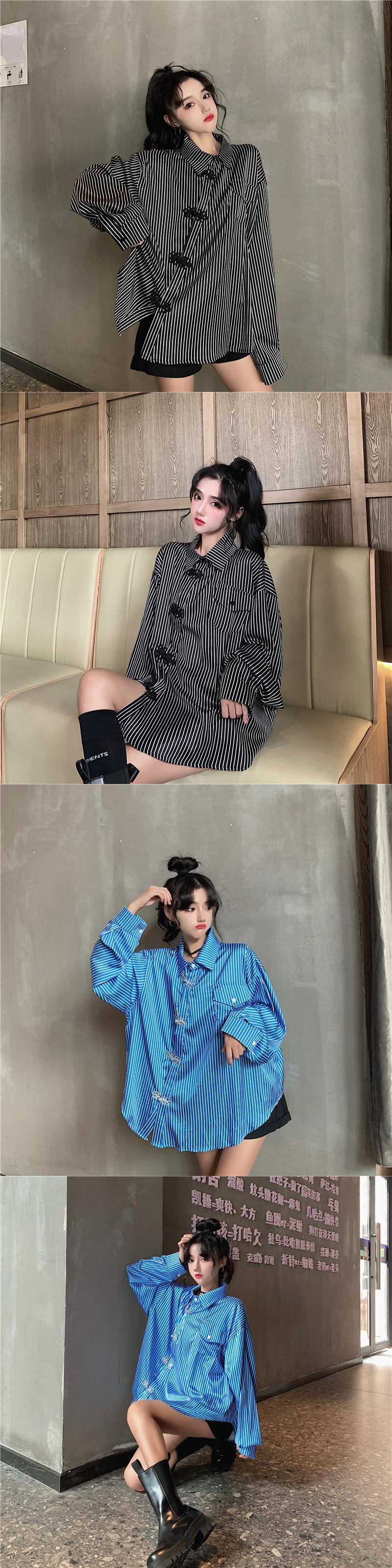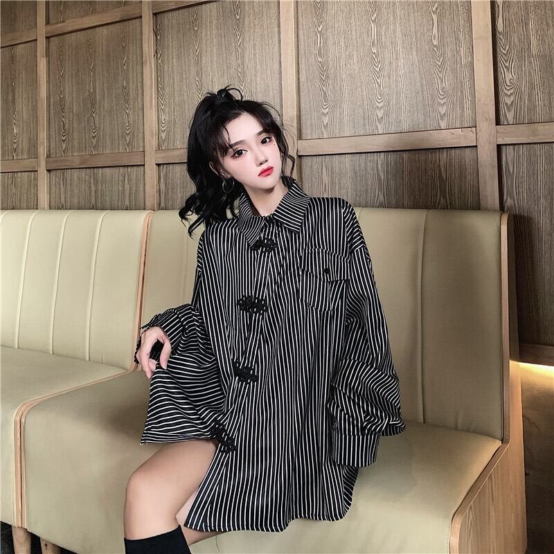 ✞ スタンダードボタン♥カワイイ♥シャツブラウスブラウス ロング レトロ ストライプ ✞ゴスロリ SM ミリ 甘ロリ クラロリ 和ロリ エレガント 黒ロリ 姫ロリ 華ロリ BB-BB650735201