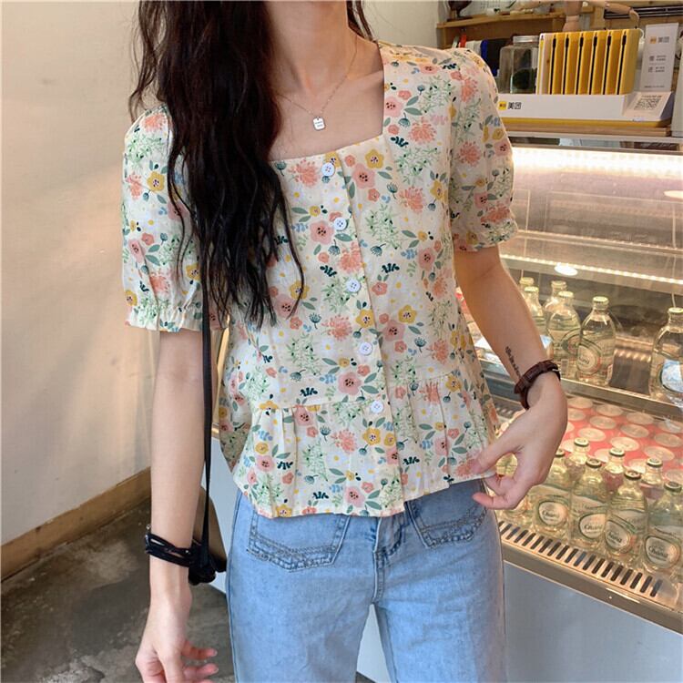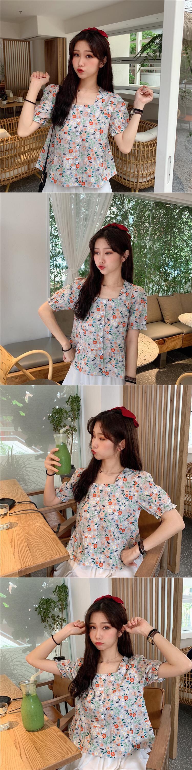 ✞ 花柄スリーブショートシャツブラウストップス スウィート スクウェア ✞ゴスロリ SM ミリ 甘ロリ クラロリ 和ロリ エレガント 黒ロリ 姫ロリ 華ロリ BB-BB83499337490