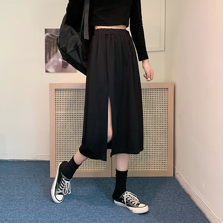 ✞ ブラックサイドスリットスカート ストレッチ★♥カワイイ♥ エラスティック 伸縮 ✞ゴスロリ SM ミリ 甘ロリ クラロリ 和ロリ エレガント 黒ロリ 姫ロリ 華ロリ BB-BB21436342659