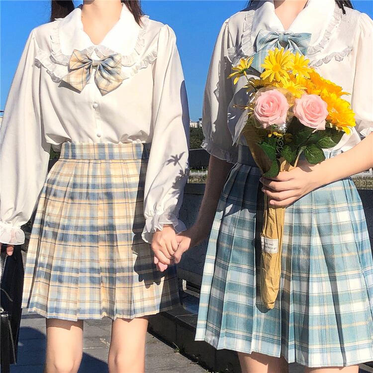 色:シャツ長袖ワンピース,半袖シャツ,黄色いスカート+蝶ネクタイ,グリーンスカート+蝶ネクタイ