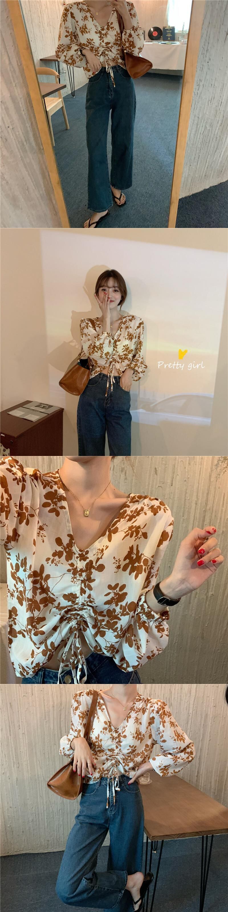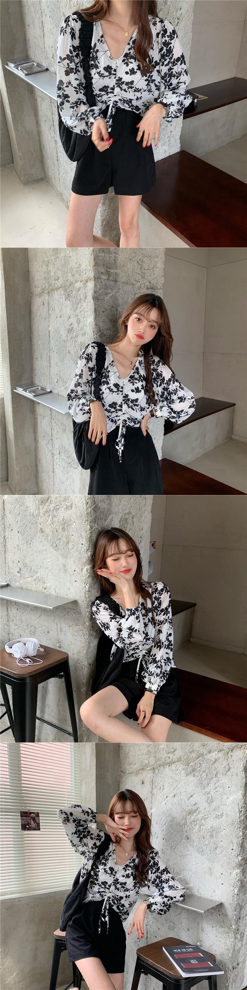 ✞ シャツブラウスVネック花柄ギャザーショートスリーブブラウス ランタンスリーブ スウィート ✞ゴスロリ SM ミリ 甘ロリ クラロリ 和ロリ エレガント 黒ロリ 姫ロリ 華ロリ BB-BB32679187259