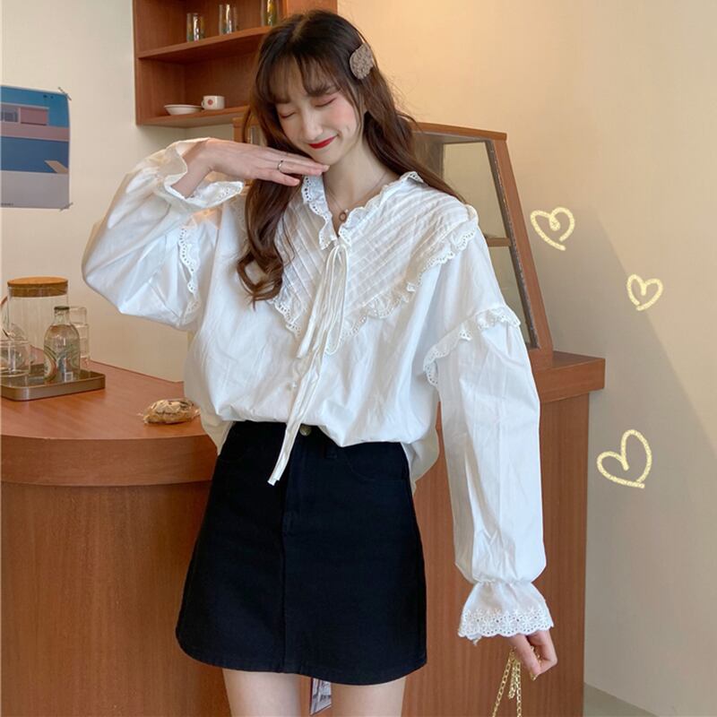 ✞ シャツブラウス♡Vネック長袖スリーブ ロング ✞ゴスロリ SM ミリ 甘ロリ クラロリ 和ロリ エレガント 黒ロリ 姫ロリ 華ロリ BB-BB93035629231