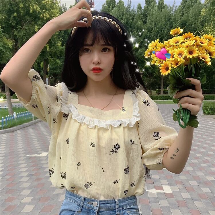 ✞ レーススリーブ花柄シャツブラウストップス 大人女子☆ スウィート スクウェア ステッチ ✞ゴスロリ SM ミリ 甘ロリ クラロリ 和ロリ エレガント 黒ロリ 姫ロリ 華ロリ BB-BB58462123319