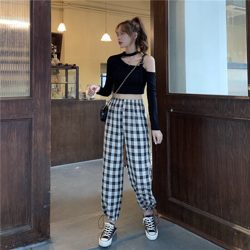 ✞ セット ストラップレススリムTシャツ チェック柄カジュアルパンツ ロング ✞ゴスロリ SM ミリ 甘ロリ クラロリ 和ロリ エレガント 黒ロリ 姫ロリ 華ロリ BB-BB5693293778
