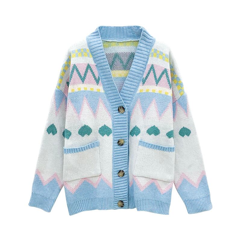 ✞ ♡カラージャカードVネックニットセーター ジャケット ロング ✞ゴスロリ SM ミリ 甘ロリ クラロリ 和ロリ エレガント 黒ロリ 姫ロリ 華ロリ BB-BB54643306674