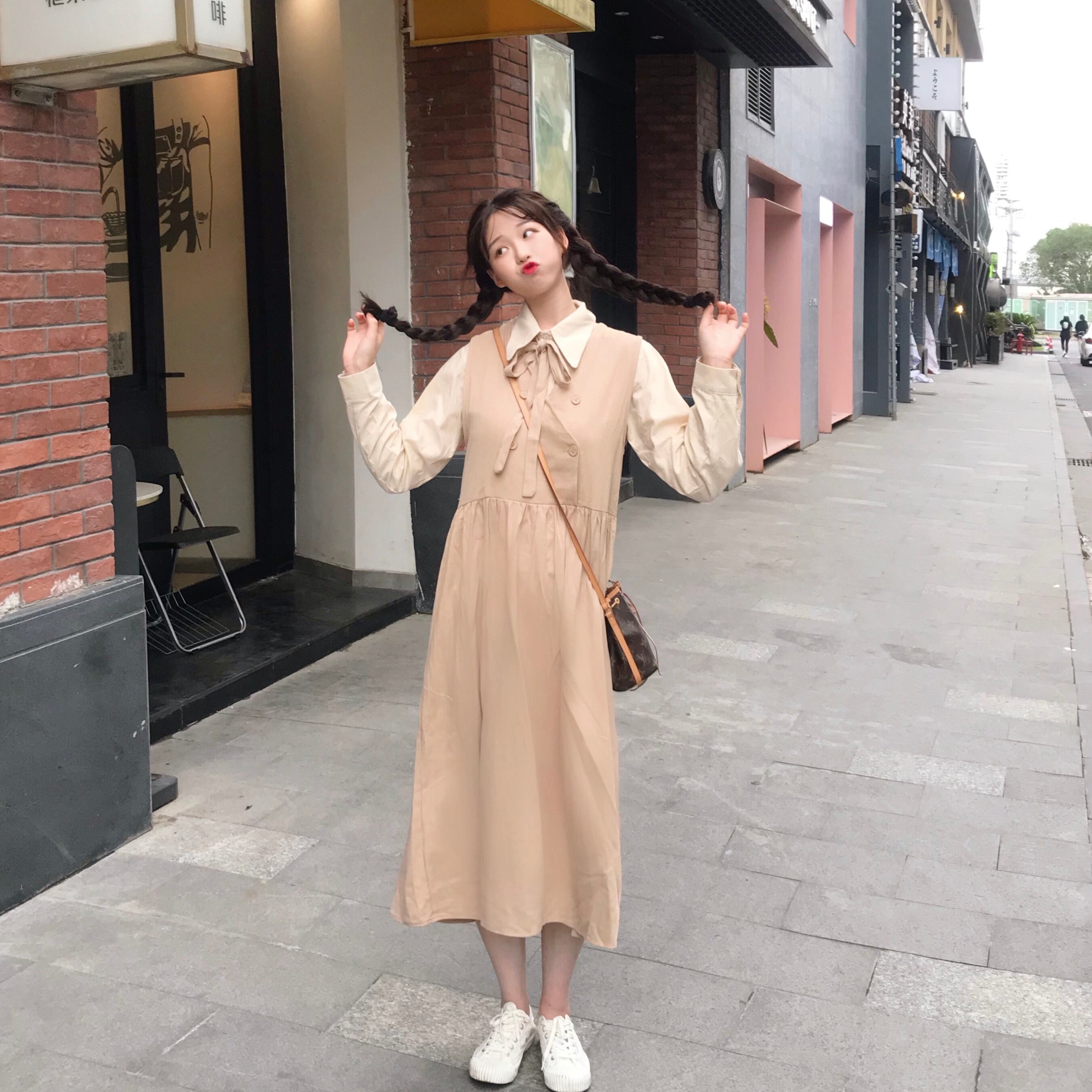 色:アプリコットシャツワンピース,ブラウンワンピース
