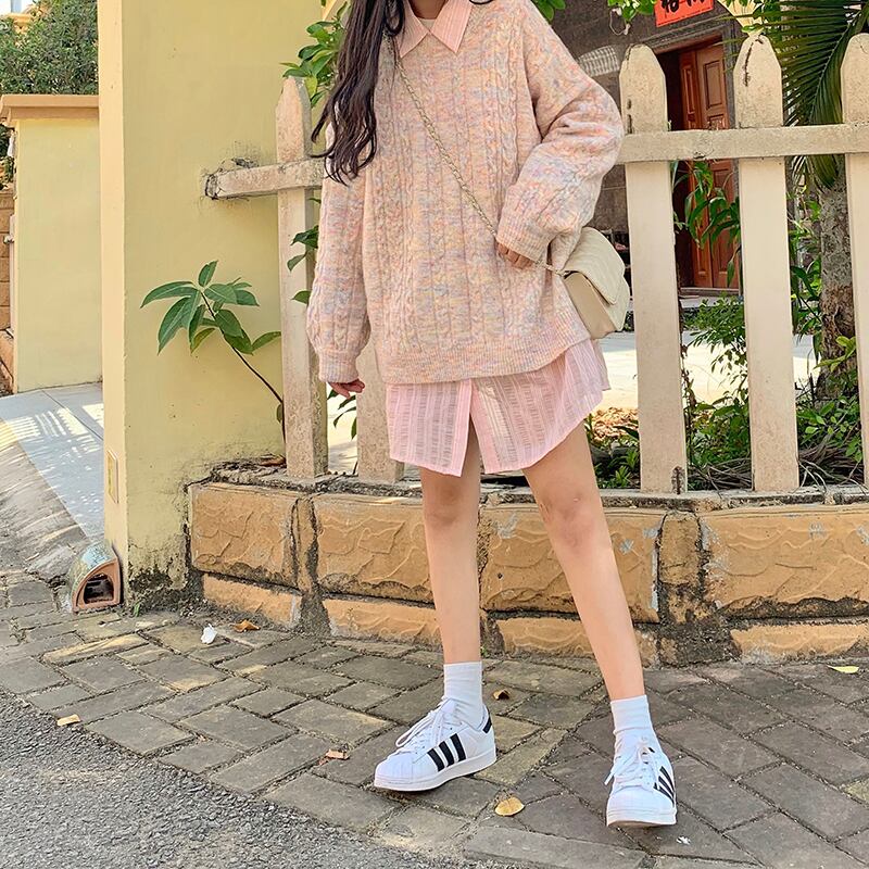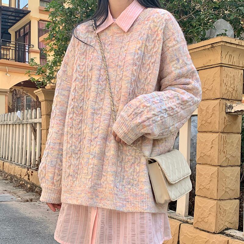 ✞ ニットセーター ラウンドネックトップス ロング ピンク スウィート ✞ゴスロリ SM ミリ 甘ロリ クラロリ 和ロリ エレガント 黒ロリ 姫ロリ 華ロリ BB-BB48477802005