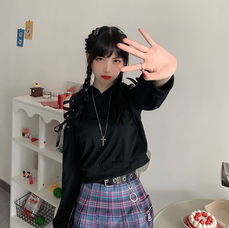 ✞ オータムVネックストラップレスクロススリーブショートセーター 大人女子☆ ランタンスリーブ 秋物 ✞ゴスロリ SM ミリ 甘ロリ クラロリ 和ロリ エレガント 黒ロリ 姫ロリ 華ロリ BB-BB61016462721