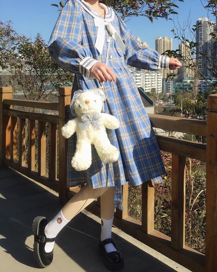 ✞ スカート リボンネイビー長袖スリーブスタンダードチェック柄 ロング レトロ スウィート ✞ゴスロリ SM ミリ 甘ロリ クラロリ 和ロリ エレガント 黒ロリ 姫ロリ 華ロリ BB-BB37881115823