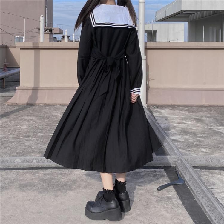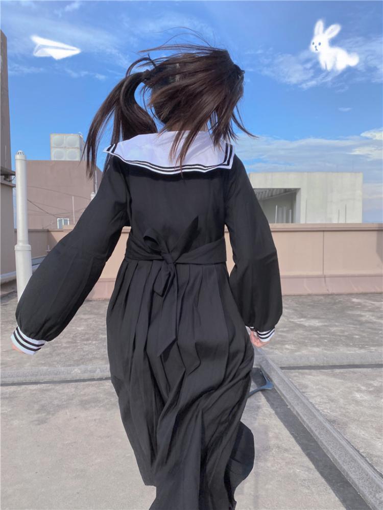 ✞ リボンネイビー長袖スリーブ♡スカート ロング スウィート ガーリー ✞ゴスロリ SM ミリ 甘ロリ クラロリ 和ロリ エレガント 黒ロリ 姫ロリ 華ロリ BB-BB2427093