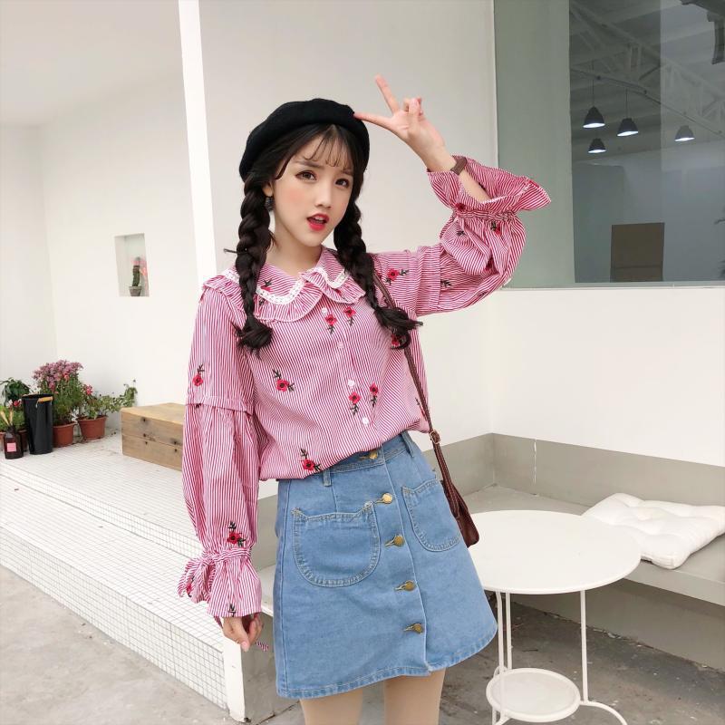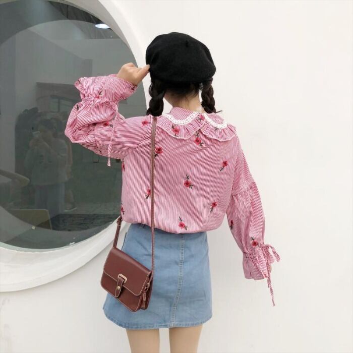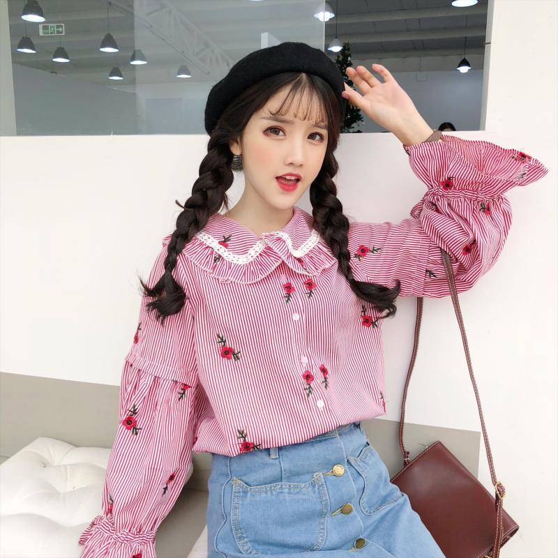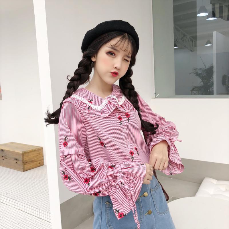 ✞ 刺繍♥カワイイ♥ストライプシャツブラウスブラウス ロング スウィート ✞ゴスロリ SM ミリ 甘ロリ クラロリ 和ロリ エレガント 黒ロリ 姫ロリ 華ロリ BB-BB32750970229
