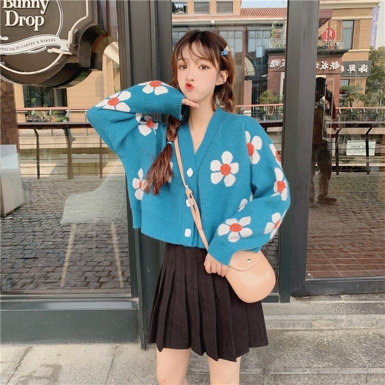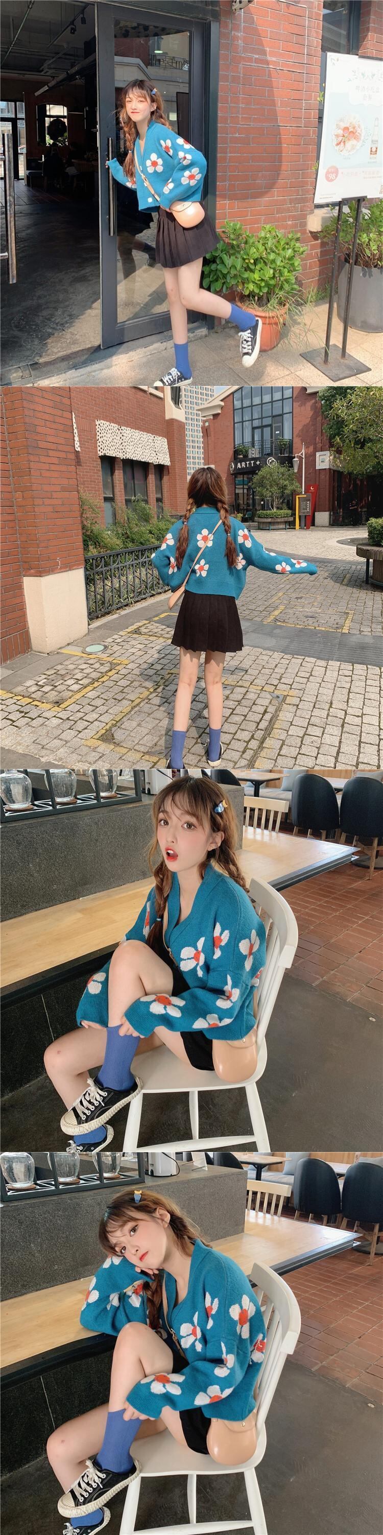 ✞ スタンダード♡花柄パターンショート長袖スリーブVネックニットカーディガン大人女子☆ ロング レトロ フラワーデザイン ✞ゴスロリ SM ミリ 甘ロリ クラロリ 和ロリ エレガント 黒ロリ 姫ロリ 華ロリ BB-BB71038741689