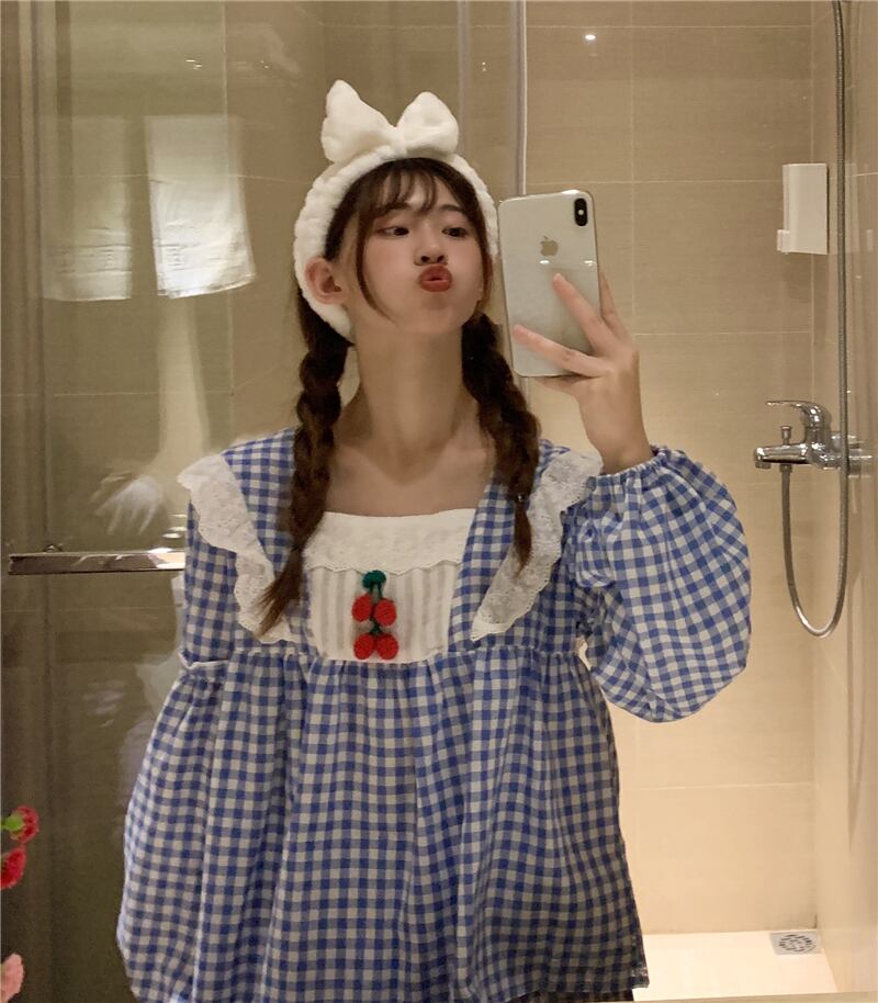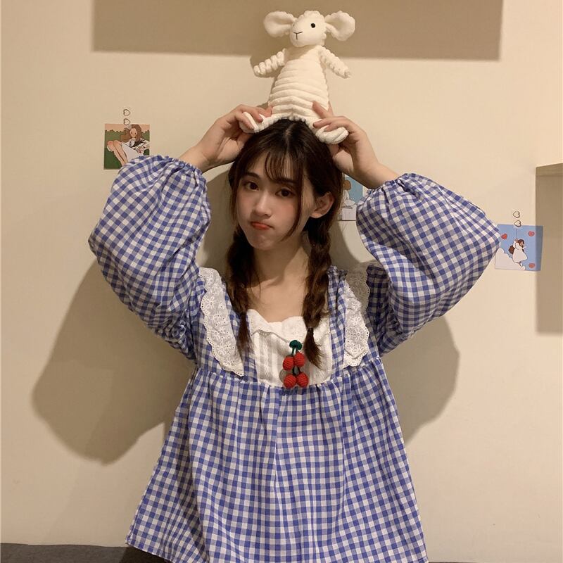 ✞ チェック柄♡長袖スリーブカジュアル ロング スウィート ガーリー ✞ゴスロリ SM ミリ 甘ロリ クラロリ 和ロリ エレガント 黒ロリ 姫ロリ 華ロリ BB-BB25222296588