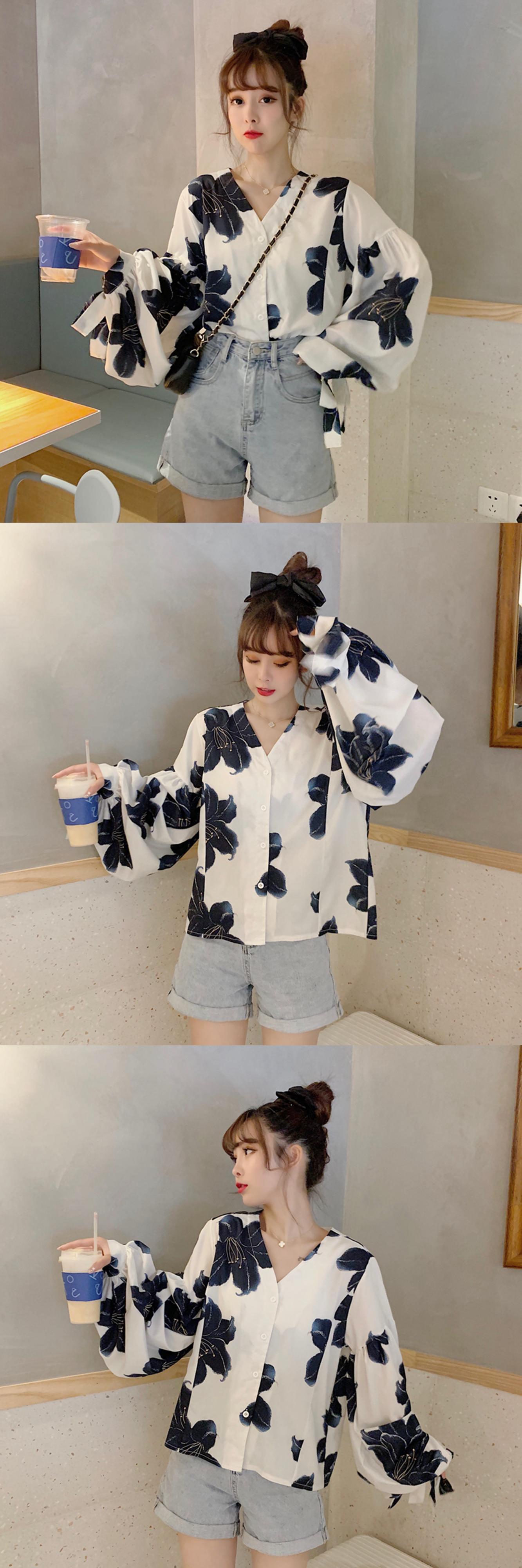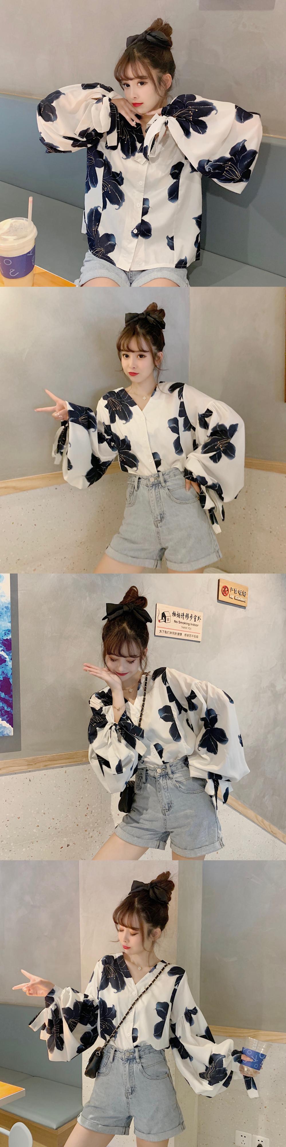 ✞ Vネック花柄スリーブスタンダード♡シャツブラウス ランタンスリーブ レトロ ✞ゴスロリ SM ミリ 甘ロリ クラロリ 和ロリ エレガント 黒ロリ 姫ロリ 華ロリ BB-BB50635941720