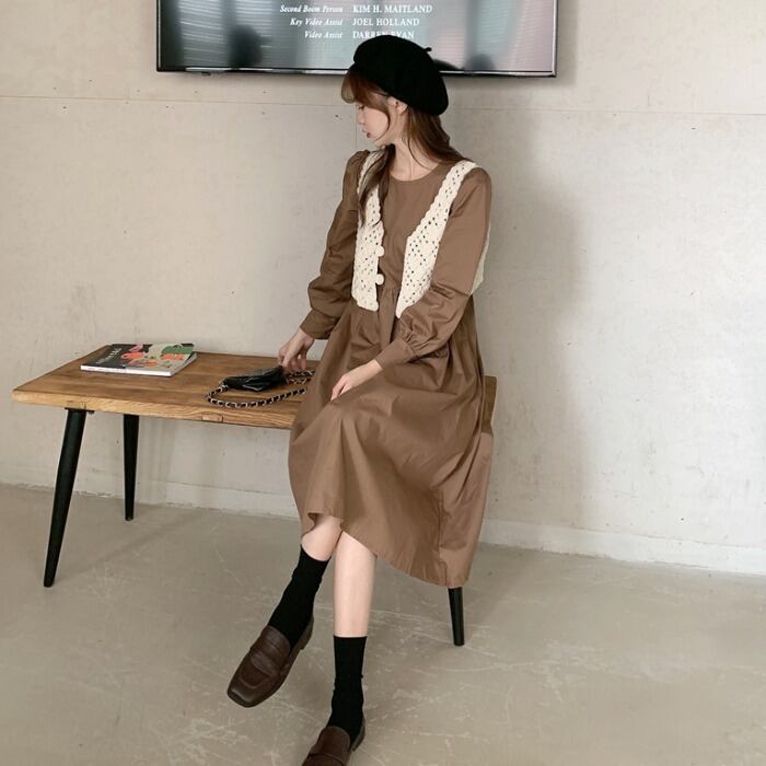 種類 サイズ:ワンサイズ, 色:ピーコックブルーワンピース サイズ:ワンサイズ, 色:キャラメルワンピース サイズ:ワンサイズ, 色:ブラックワンピース サイズ:ワンサイズ, 色:アプリコットかぎ針編みベストシングルピース