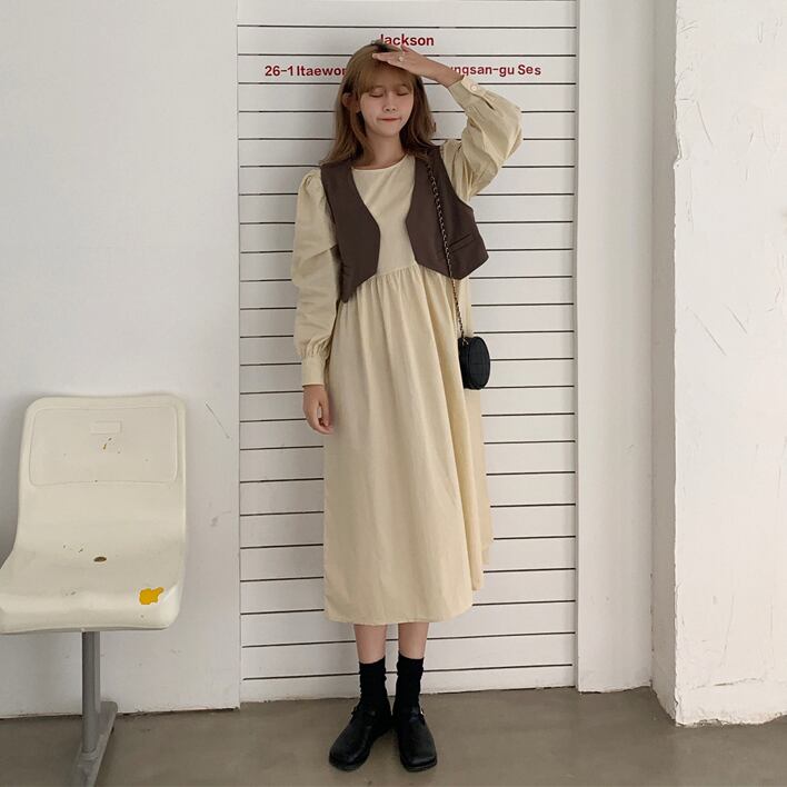 種類 サイズ:ワンサイズ, 色:アプリコットベストワンピース サイズ:ワンサイズ, 色:コーヒーカラーベストワンピース サイズ:ワンサイズ, 色:ブラックワンピース サイズ:ワンサイズ, 色:アプリコットワンピース