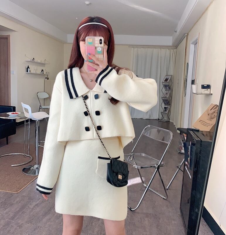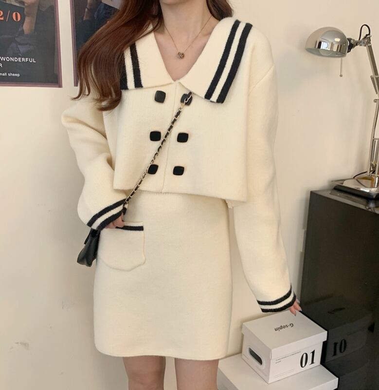 ✞ ネイビー♡大人女子☆ショート♥カワイイ♥セーター Aラインスカート ロング スウィート ✞ゴスロリ SM ミリ 甘ロリ クラロリ 和ロリ エレガント 黒ロリ 姫ロリ 華ロリ BB-BB83448565817
