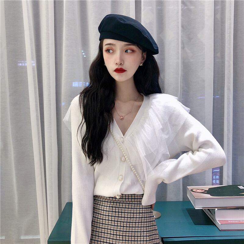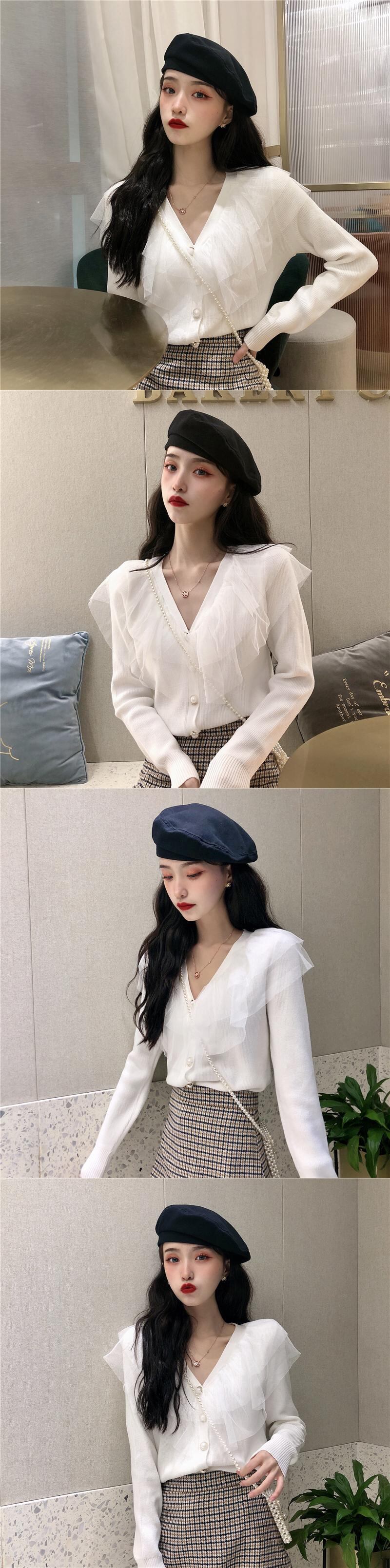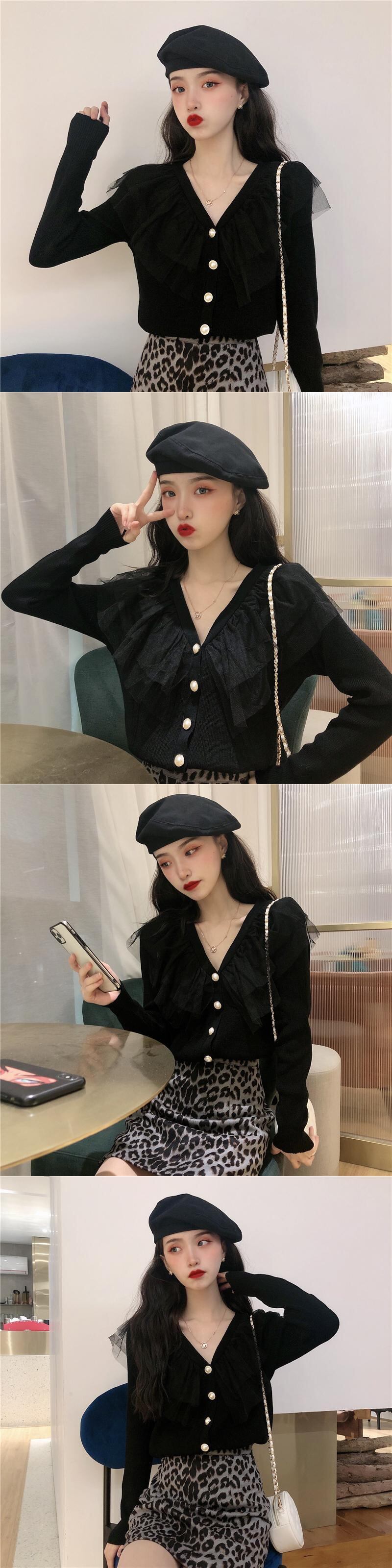 ✞ Vネックメッシュニットセーター カーディガンショートジャケット スウィート ステッチ ✞ゴスロリ SM ミリ 甘ロリ クラロリ 和ロリ エレガント 黒ロリ 姫ロリ 華ロリ BB-BB84898636296