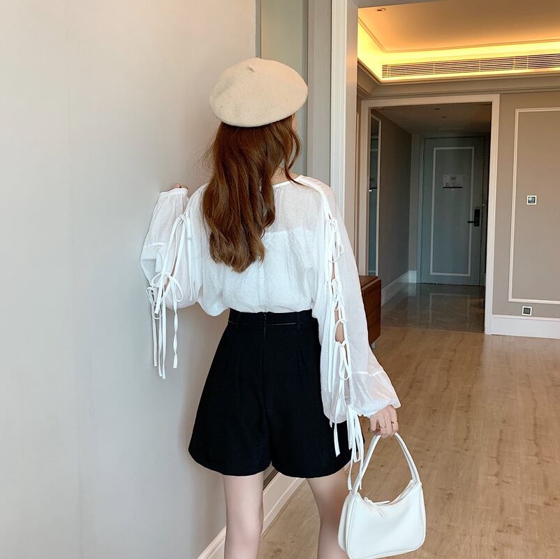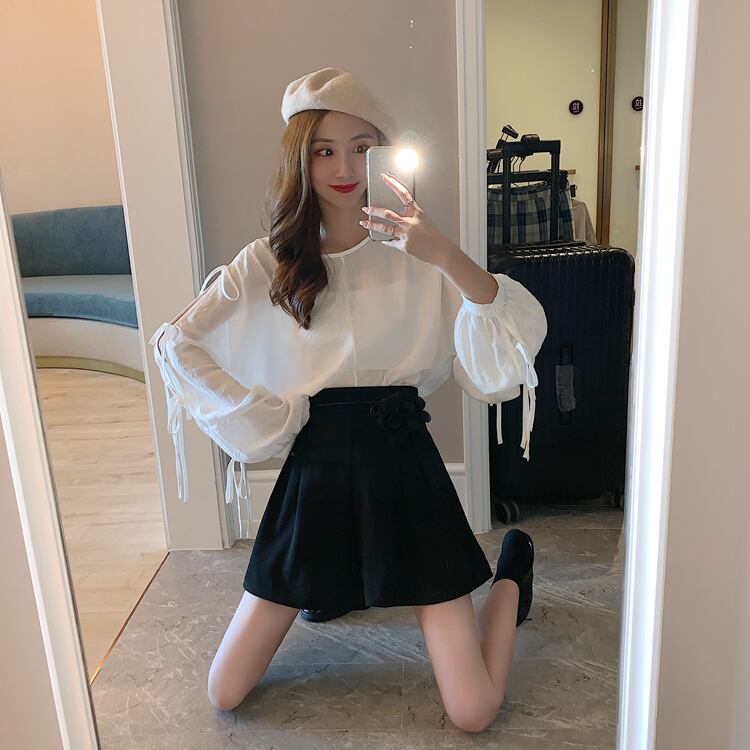 ✞ ♡スリーブ長袖シャツブラウス大人女子☆ソリッド カラーワイドレッグショートパンツ ロング ソリッドカラー ✞ゴスロリ SM ミリ 甘ロリ クラロリ 和ロリ エレガント 黒ロリ 姫ロリ 華ロリ BB-BB41096146265
