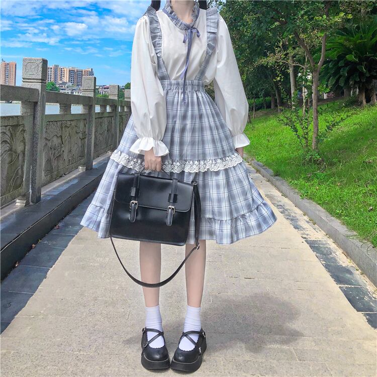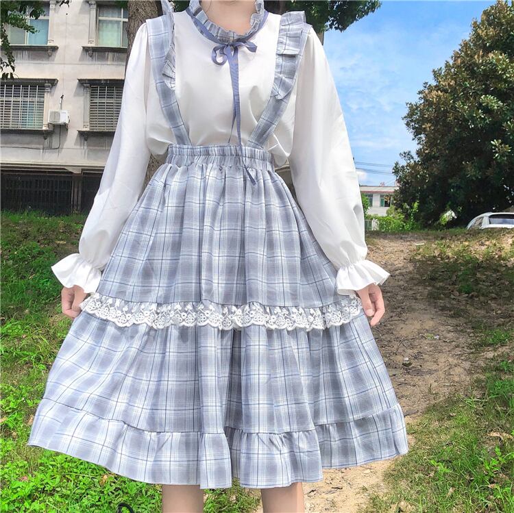 ✞ スカート ♡レースチェック柄ラッフル スウィート ガーリー ステッチ ✞ゴスロリ SM ミリ 甘ロリ クラロリ 和ロリ エレガント 黒ロリ 姫ロリ 華ロリ BB-BB45352132544