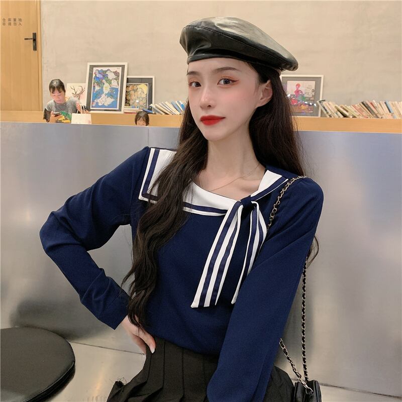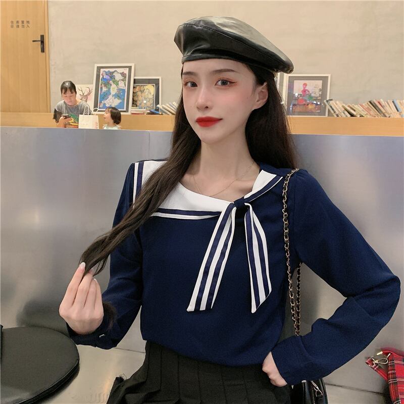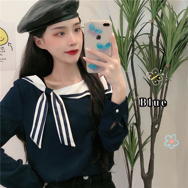 ✞ ♡ネイビーリボンシャツブラウスカラーブラウス 大人女子☆ ロング スウィート ✞ゴスロリ SM ミリ 甘ロリ クラロリ 和ロリ エレガント 黒ロリ 姫ロリ 華ロリ BB-BB81557217327