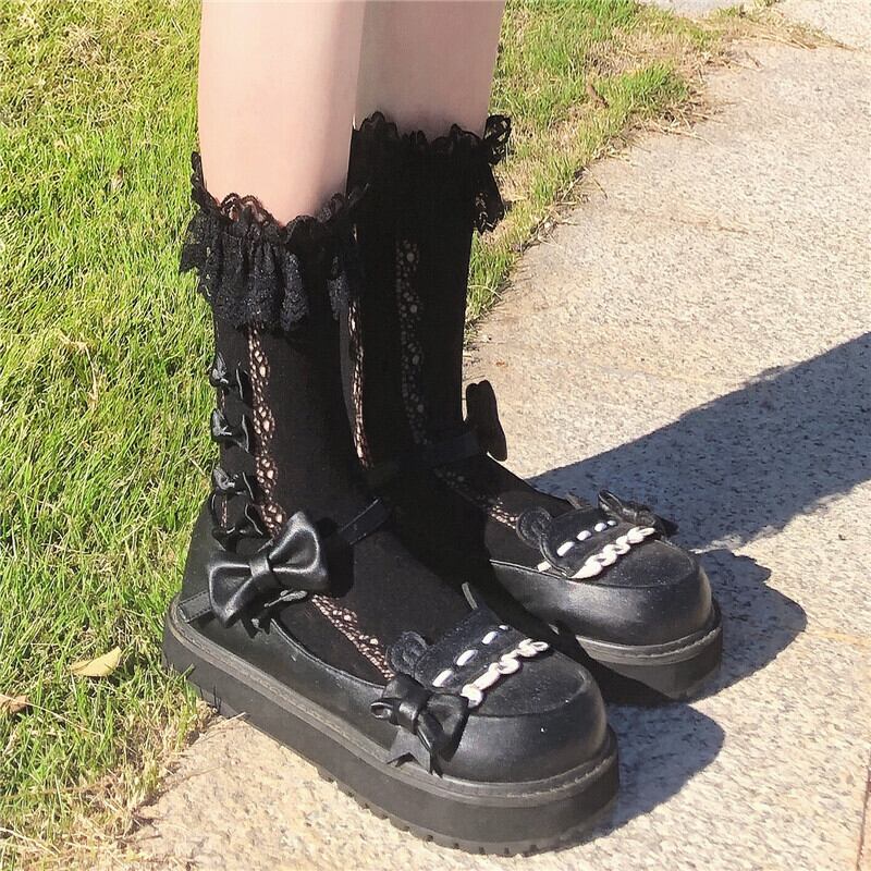 ✞ ソックス 大人女子☆リボンレース♥カワイイ♥ スウィート タイツ ストッキング ステッチ ✞ゴスロリ SM ミリ 甘ロリ クラロリ 和ロリ エレガント 黒ロリ 姫ロリ 華ロリ BB-BB91314346514