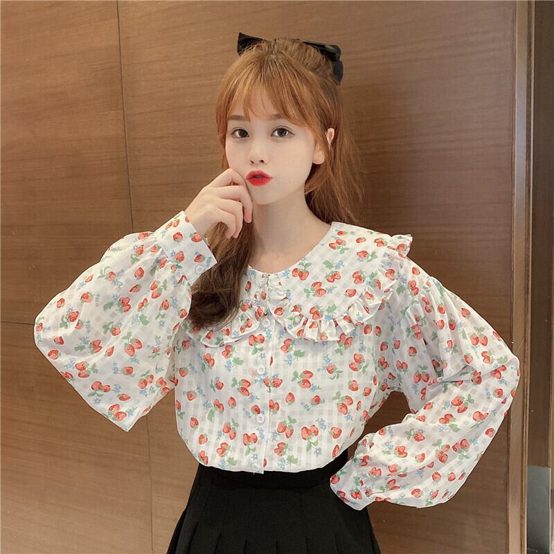 ✞ ♡スリーブチェック柄プリント柄シャツブラウス ランタンスリーブ スウィート ✞ゴスロリ SM ミリ 甘ロリ クラロリ 和ロリ エレガント 黒ロリ 姫ロリ 華ロリ BB-BB44524640876