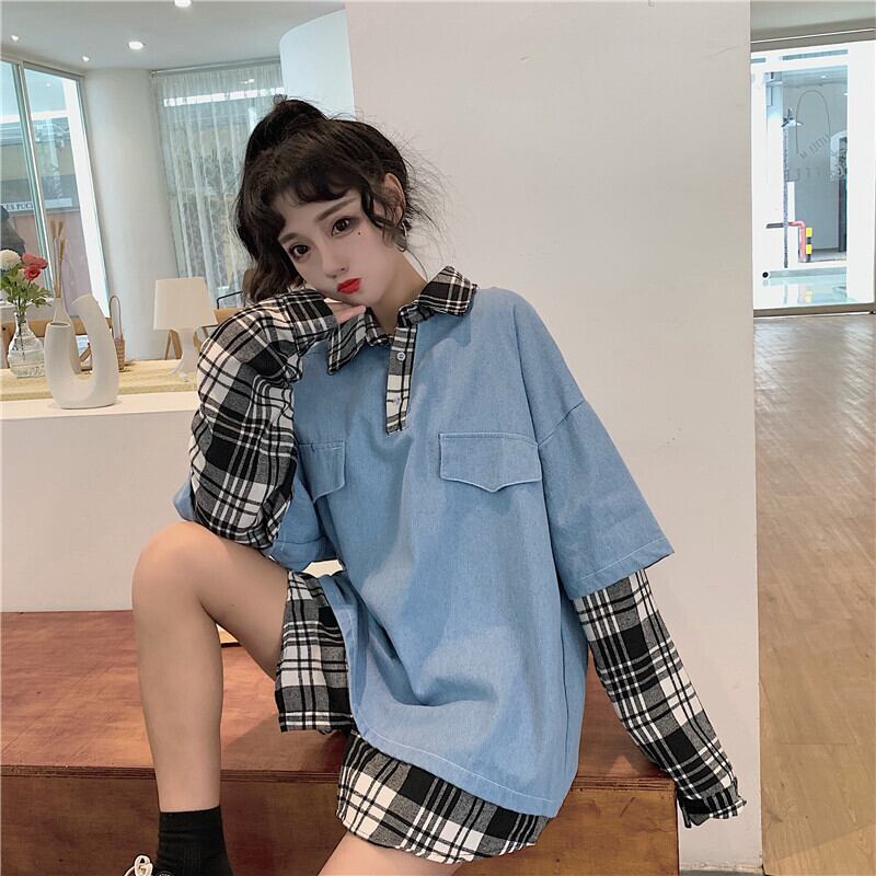 ✞ チェック柄スタンダード♥カワイイ♥シャツブラウスブラウス ロング レトロ ✞ゴスロリ SM ミリ 甘ロリ クラロリ 和ロリ エレガント 黒ロリ 姫ロリ 華ロリ BB-BB84617159699