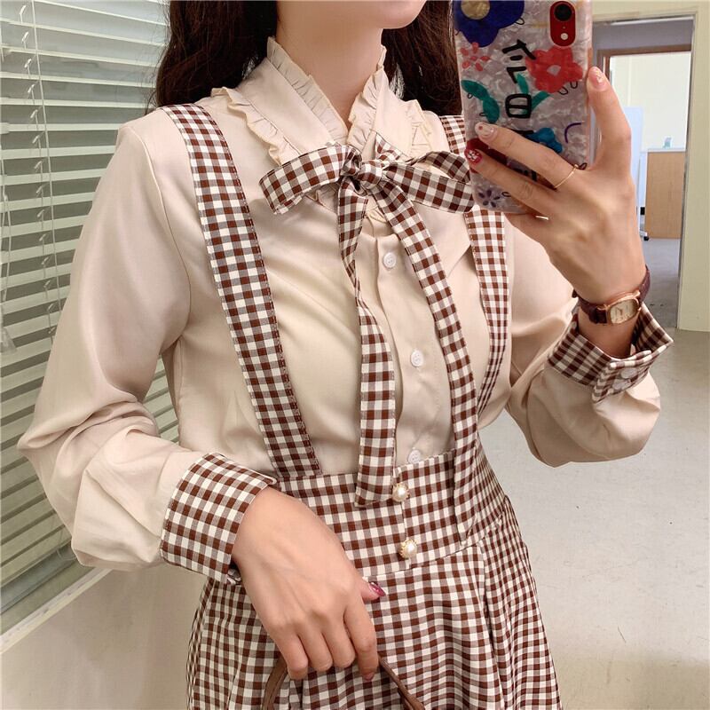 種類 サイズ:ワンサイズ, 色:白いシャツワンピース サイズ:ワンサイズ, 色:アプリコットシャツワンピース サイズ:ワンサイズ, 色: チェックスカートワンピース サイズ:ワンサイズ, 色:コーヒーカラーチェックスカートワンピース