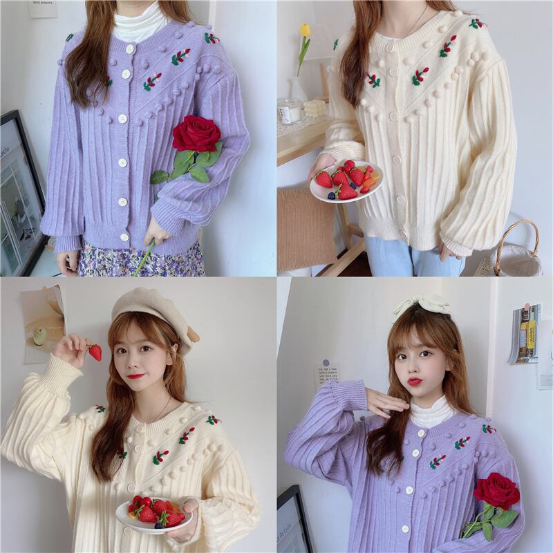 ✞ スタンダードニットセーター 長袖スリーブラウンドネック♡ ロング レッド レトロ 刺繍 スウィート カーディガン ✞ゴスロリ SM ミリ 甘ロリ クラロリ 和ロリ エレガント 黒ロリ 姫ロリ 華ロリ BB-BB36008012282