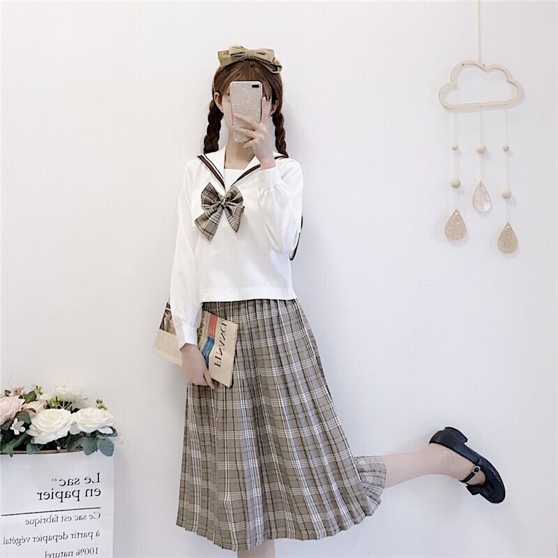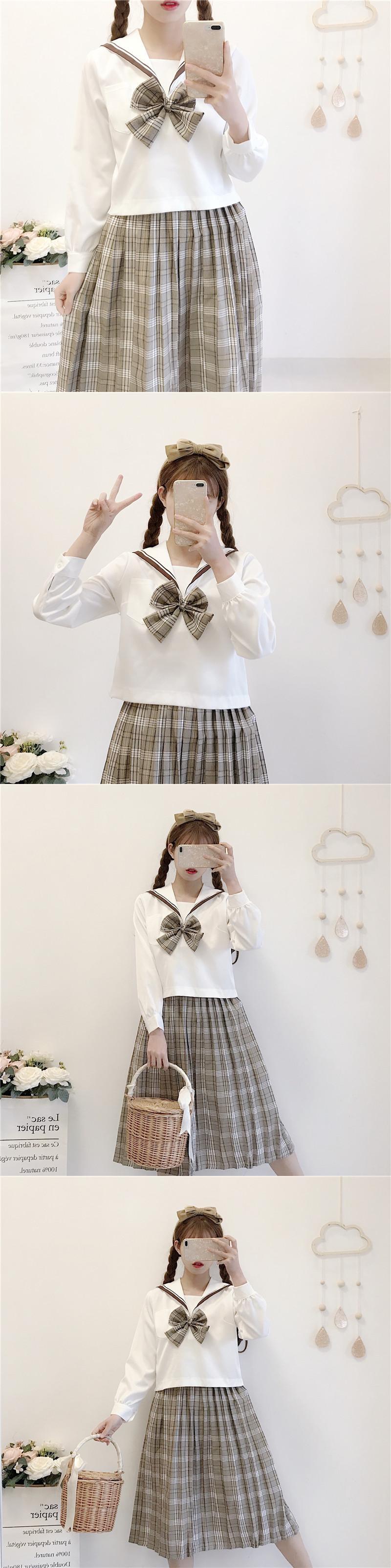 ✞ ♡ネイビーリボン長袖スリーブシャツブラウスチェック柄スカート ロング スウィート ✞ゴスロリ SM ミリ 甘ロリ クラロリ 和ロリ エレガント 黒ロリ 姫ロリ 華ロリ BB-BB85382161840