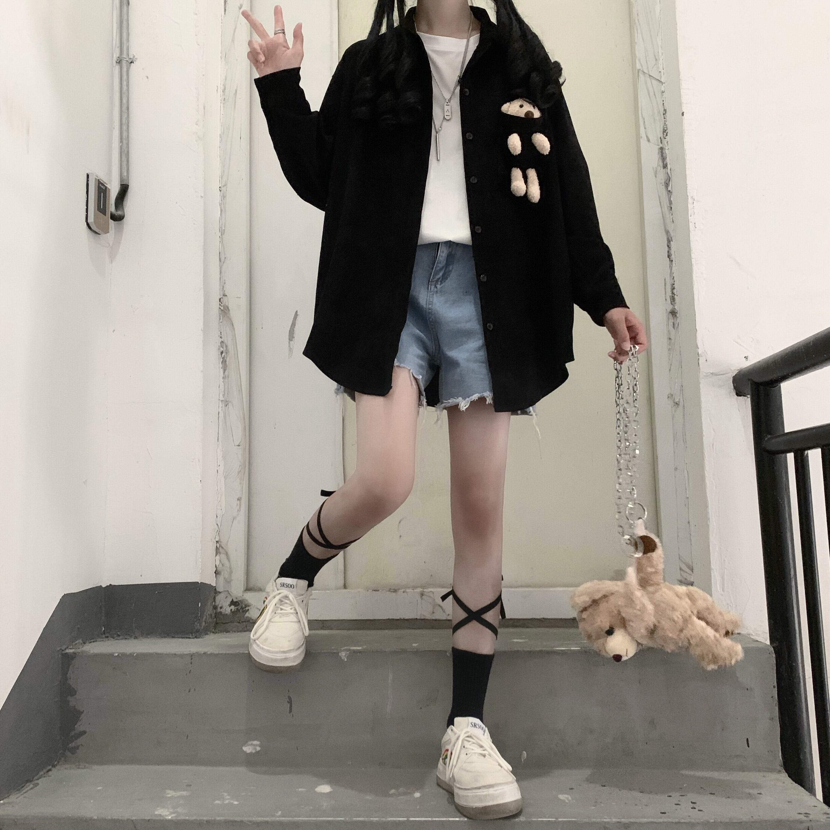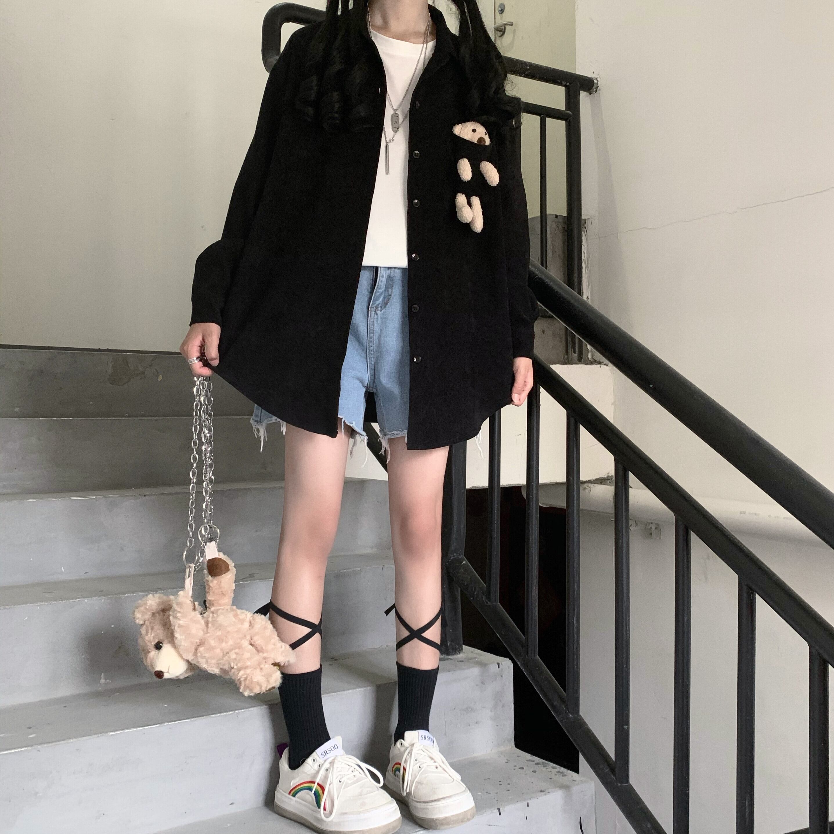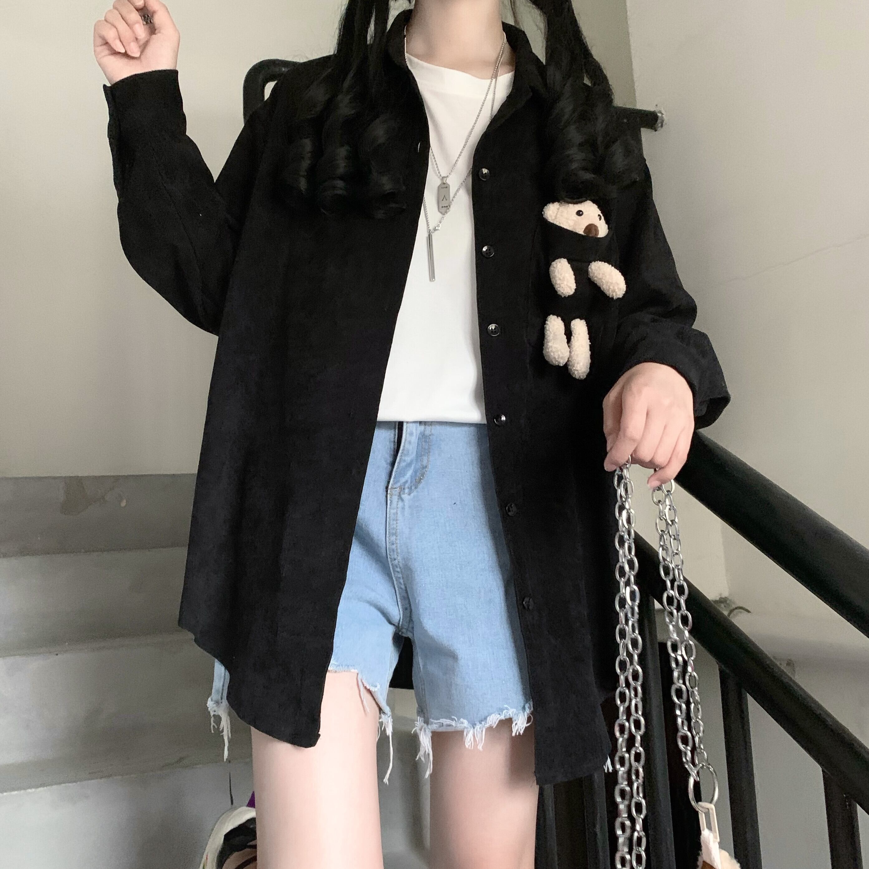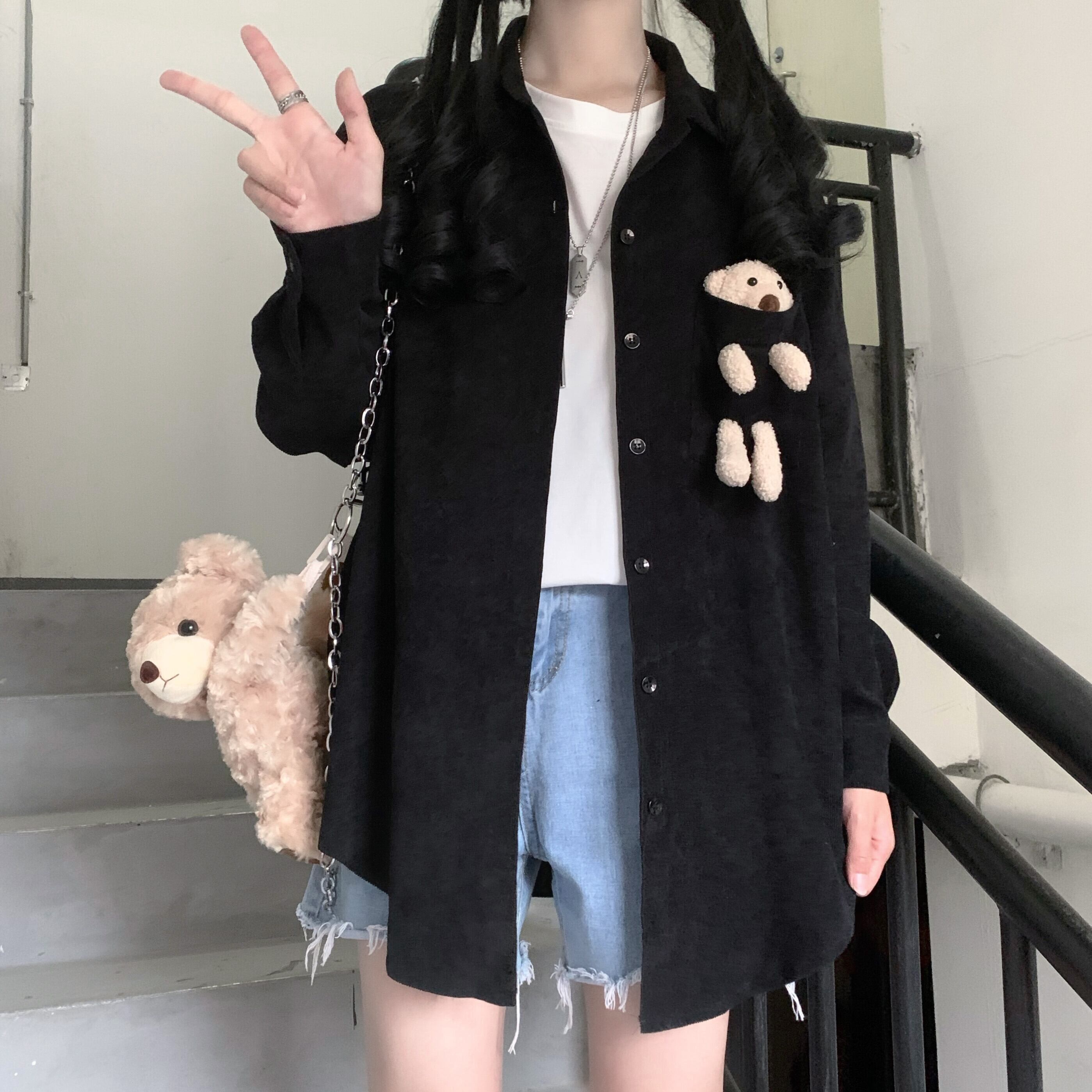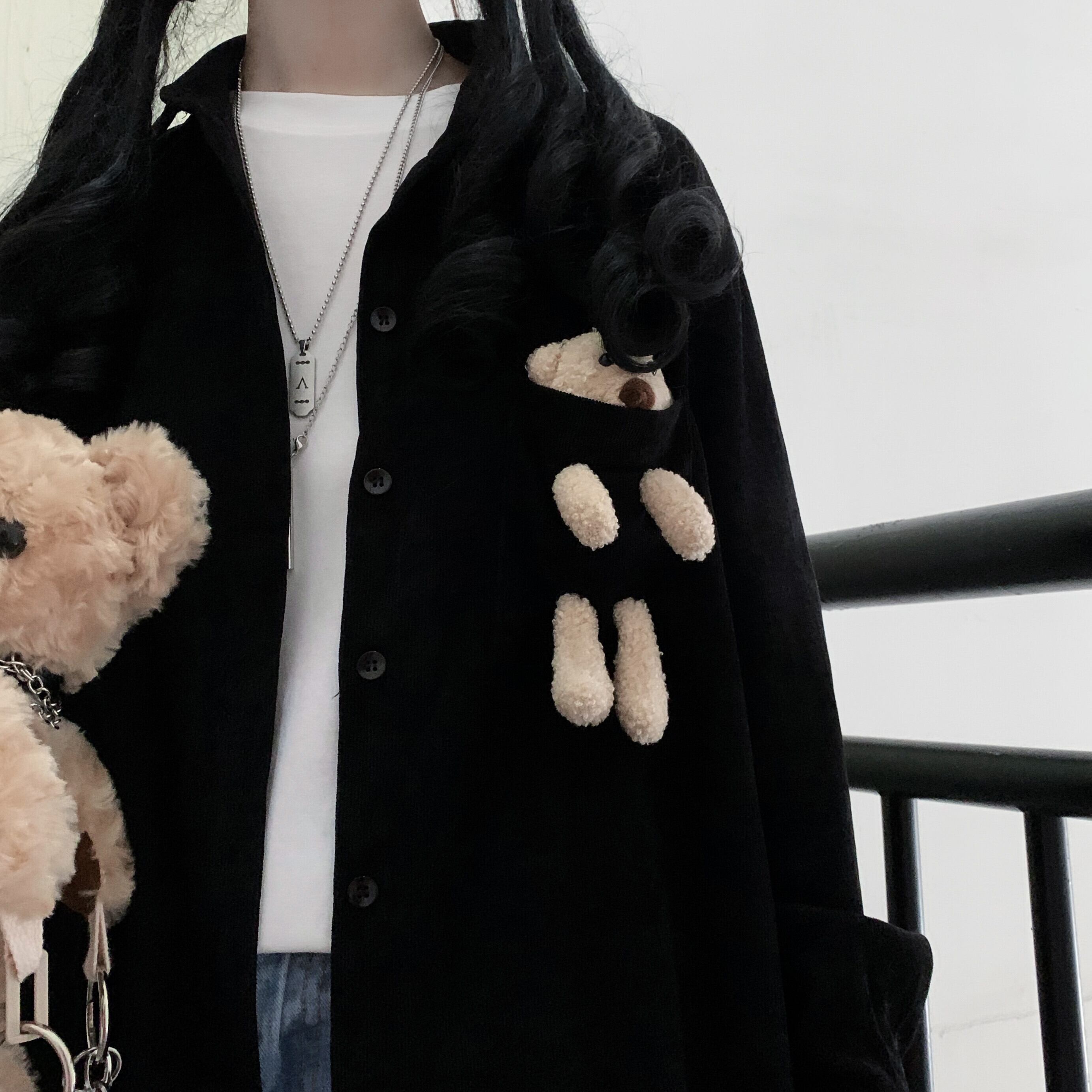 ✞ ♡長袖スリーブポケットスタンダードコーデュロイシャツブラウスジャケット ロング レトロ ✞ゴスロリ SM ミリ 甘ロリ クラロリ 和ロリ エレガント 黒ロリ 姫ロリ 華ロリ BB-BB46515084795