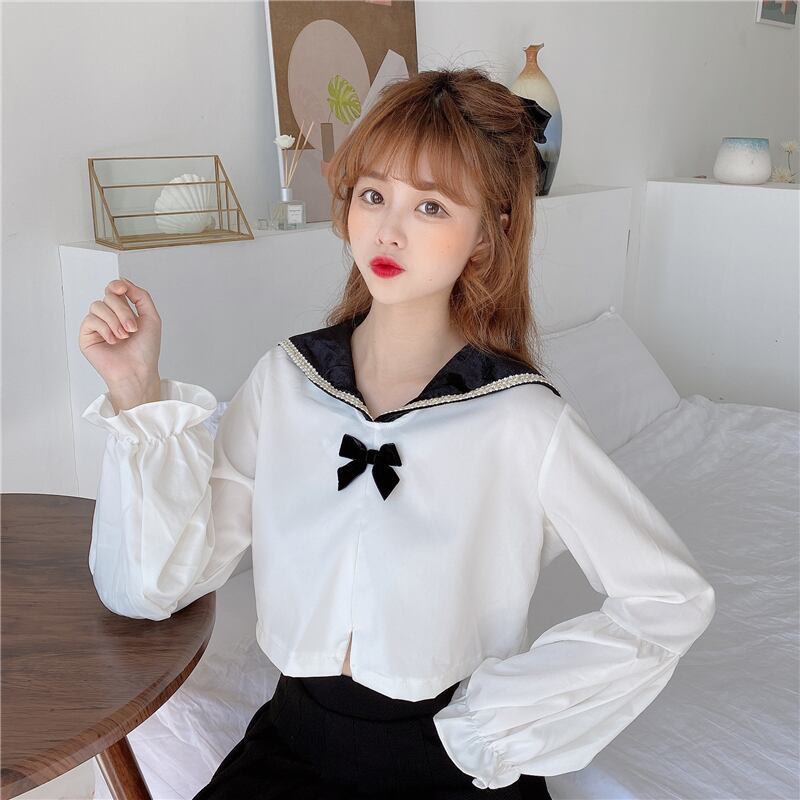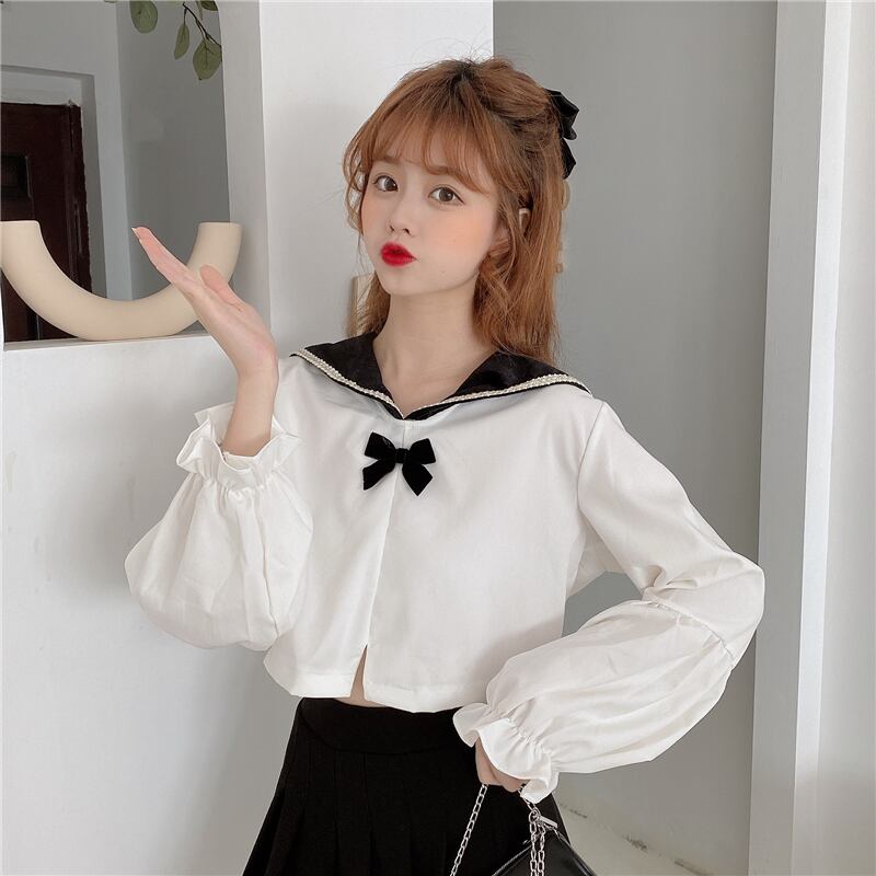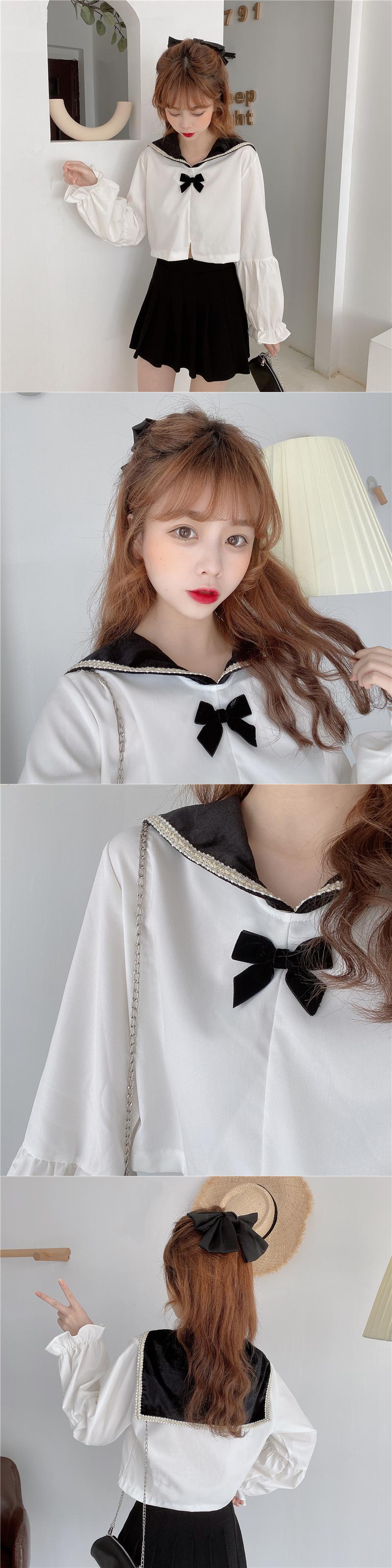 ✞ シャツブラウス♡リボンネイビースリーブショート スウィート ✞ゴスロリ SM ミリ 甘ロリ クラロリ 和ロリ エレガント 黒ロリ 姫ロリ 華ロリ BB-BB69712390846