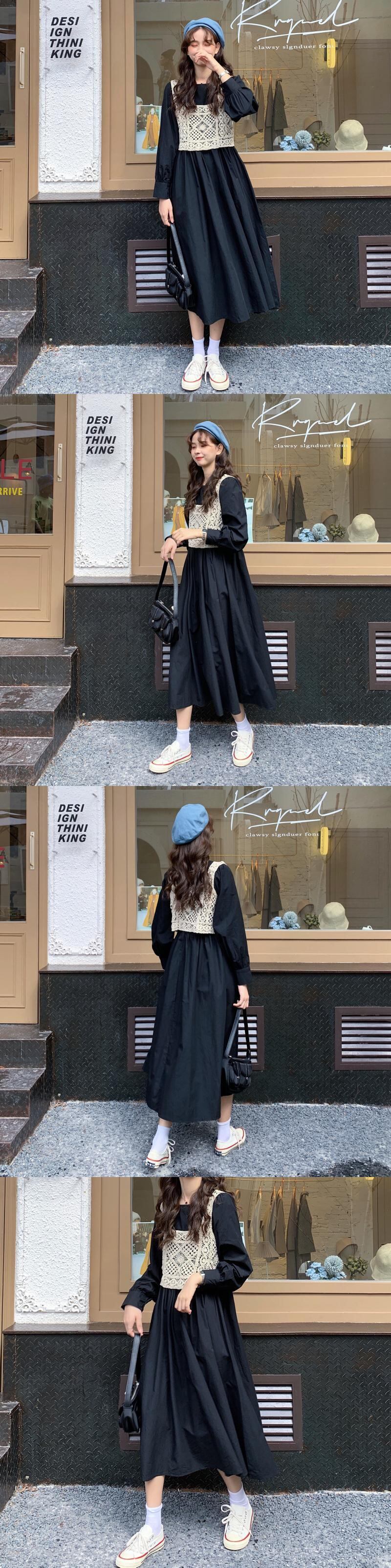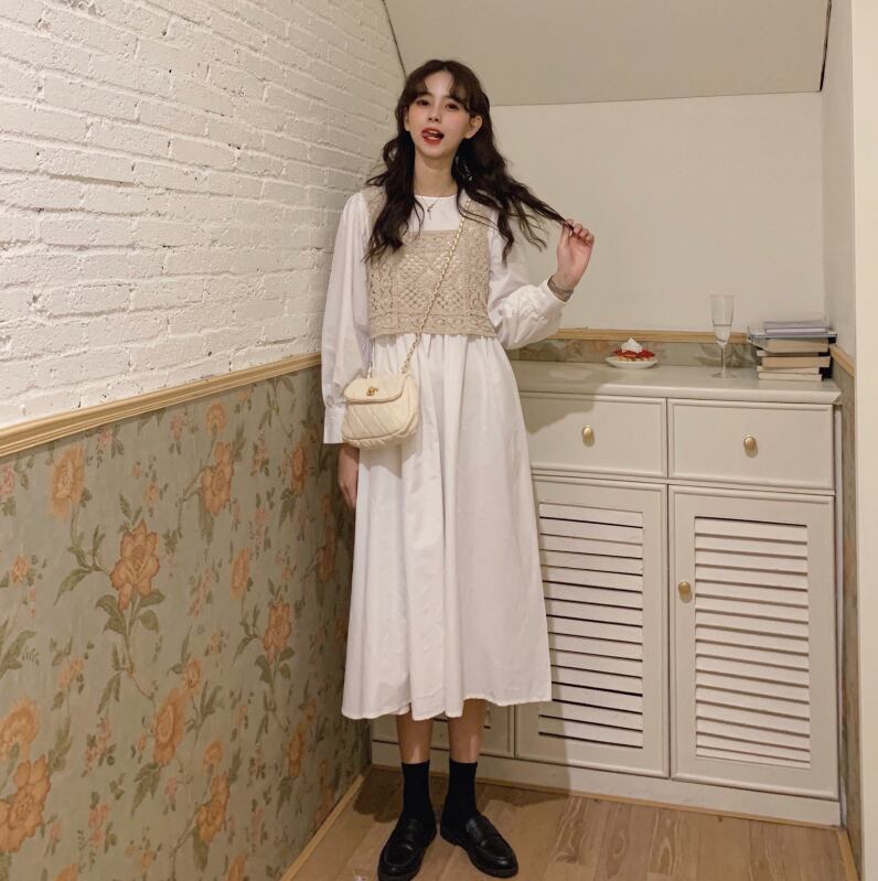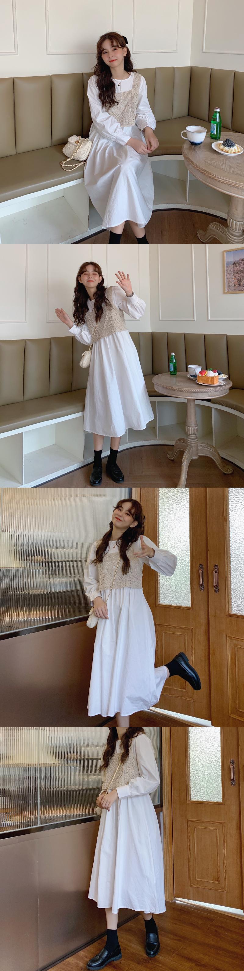 色:ホワイトスカートワンピース付き,スカート付きブラックワンピース,アプリコットかぎ針編みベストシングルピース
